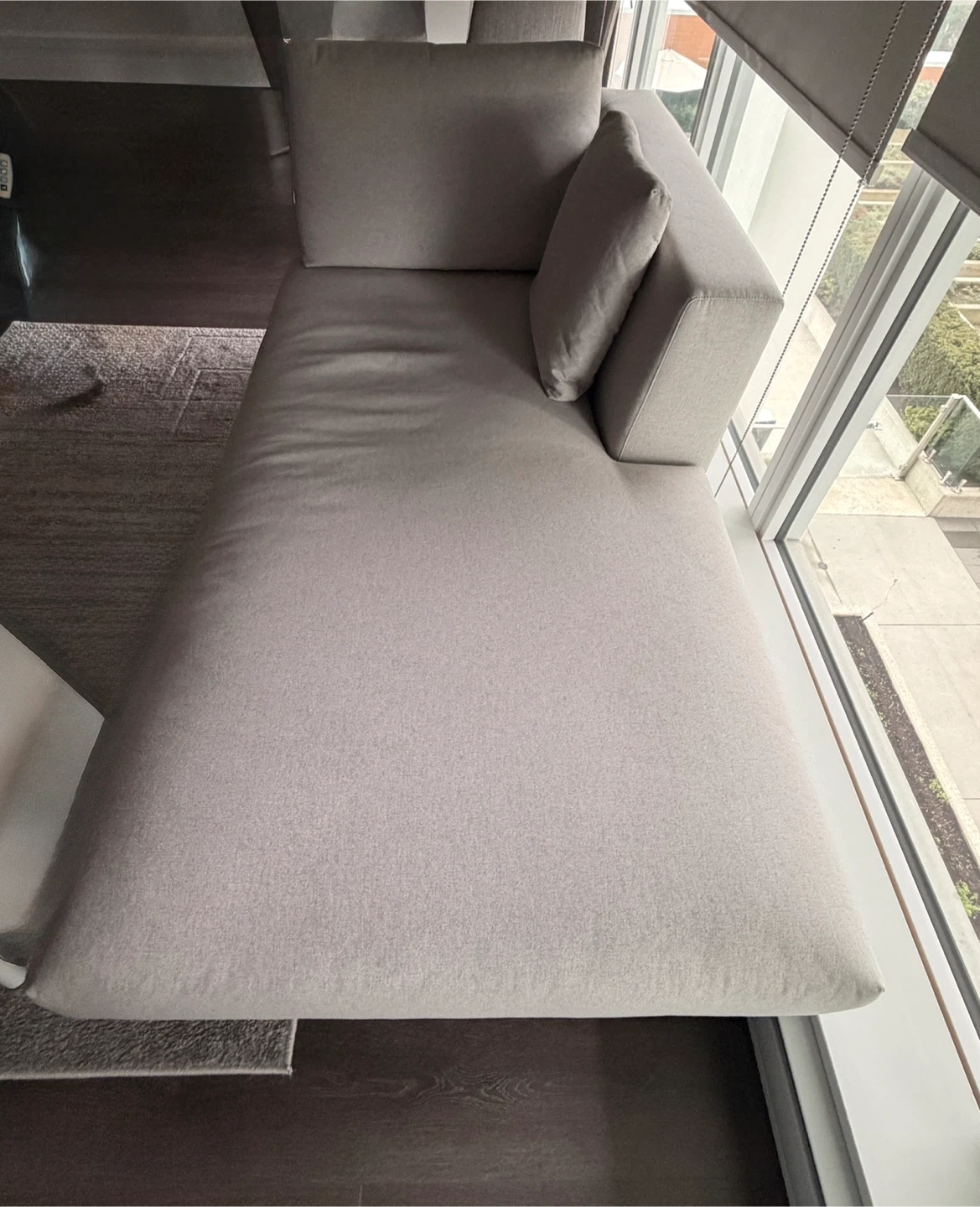 65Selling a comfy chaise lounge in light grey from Rove Concepts. It's in great condition and would be a perfect addition to any living space, indoor or outdoor. It's super comfortable for lounging and relaxing. Pillow covers are removable and washable. Cash/etransfer and pick up only. No refunds.