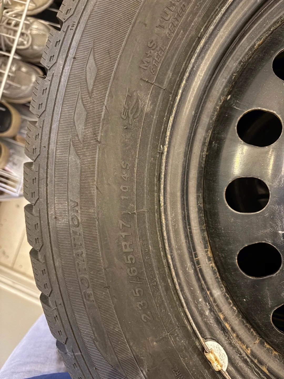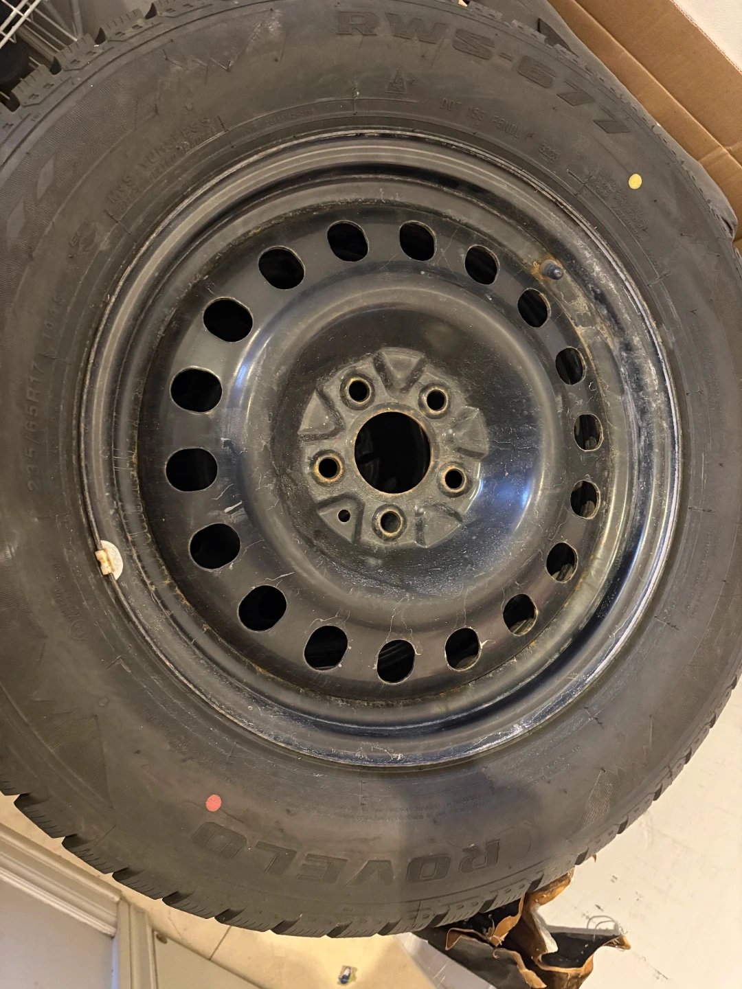 73Selling a set of Rovelo RWS-677 winter tires. The size is 235/65R17. They are in used condition but still have some life left in them! Bolt Pattern: 5x114.3mm (or 5x4.5") Offset: 39mm Center Bore: 67mm Lug Nut Thread Size: M12 x 1.5