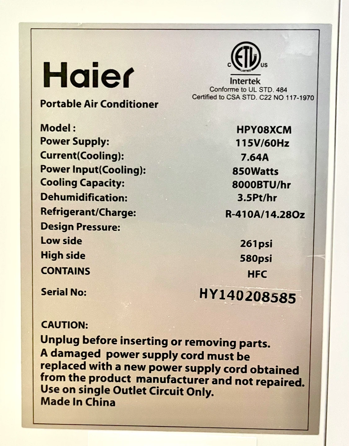 Clean, sturdy, gently used. AC unit is in great condition; window vent parts have some wear but still fully functional and easily replaceable.