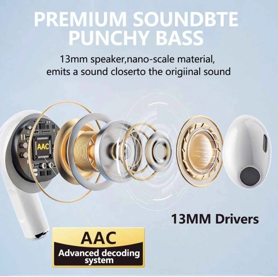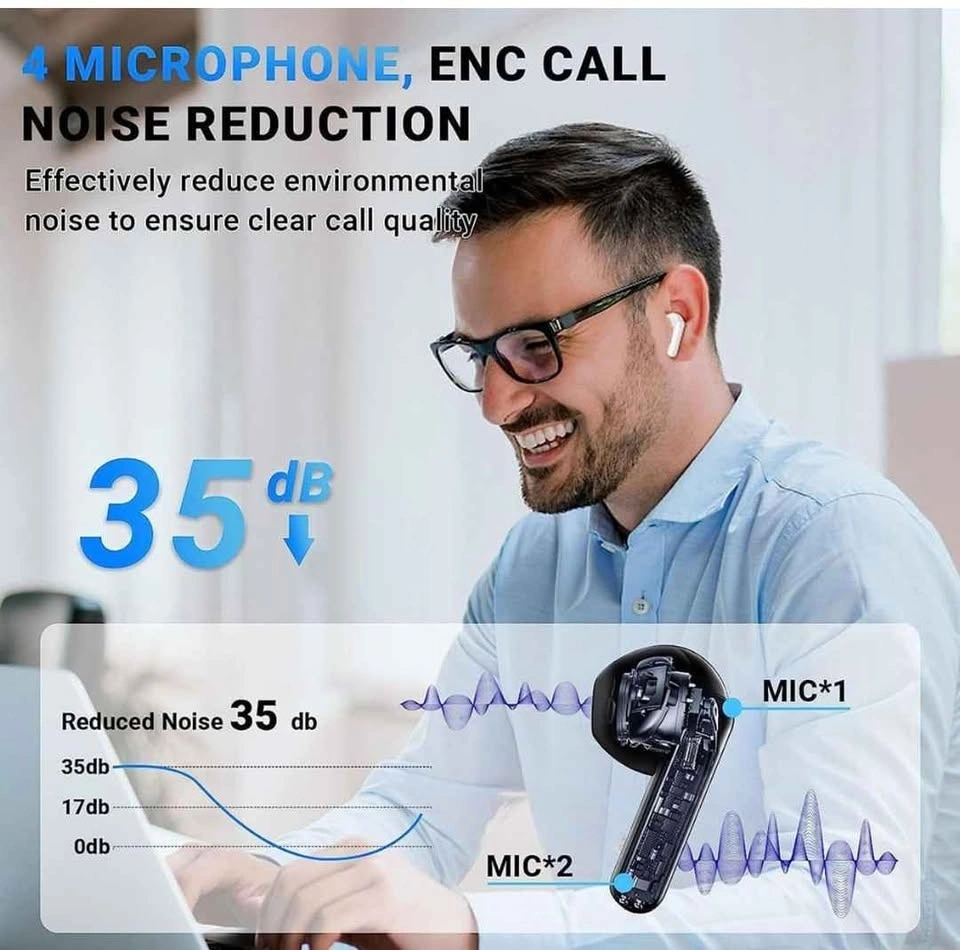 New wireless earbuds with 13mm drivers for big bass. Features Bluetooth 5.3, HiFi stereo sound, and 40 hours of playtime. They have 4 mics for clear calls and are IPX7 waterproof, making them great for sports, workouts, or running. Located in Crowsnest Pass.