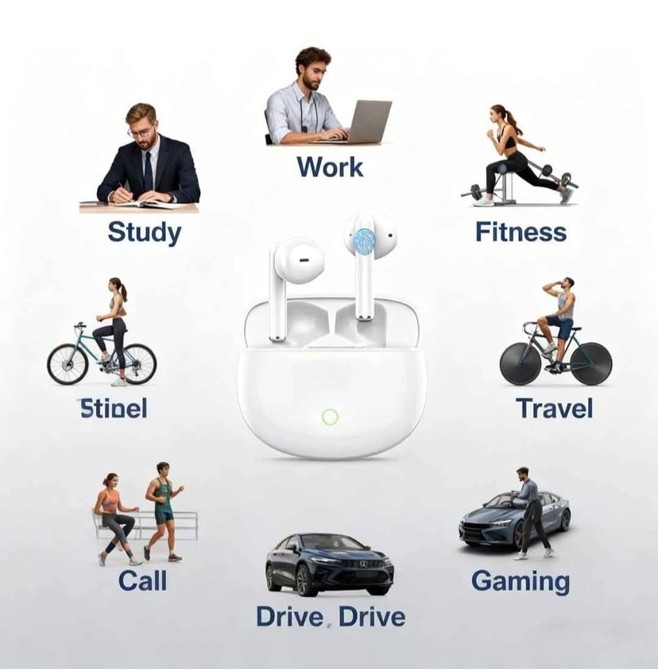 New wireless earbuds with 13mm drivers for big bass. Features Bluetooth 5.3, HiFi stereo sound, and 40 hours of playtime. They have 4 mics for clear calls and are IPX7 waterproof, making them great for sports, workouts, or running. Located in Crowsnest Pass.