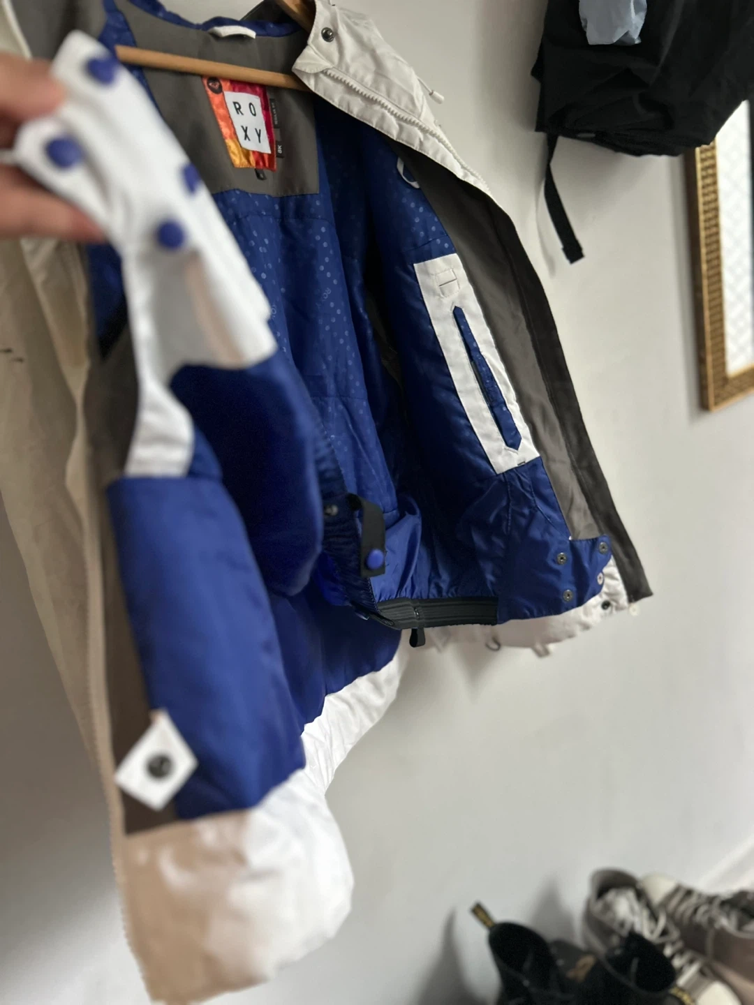 Selling a Roxy jacket in white, size small. It's a great lightweight jacket for everyday wear. Fit S/M. Like new condition! Pickup near distillery district