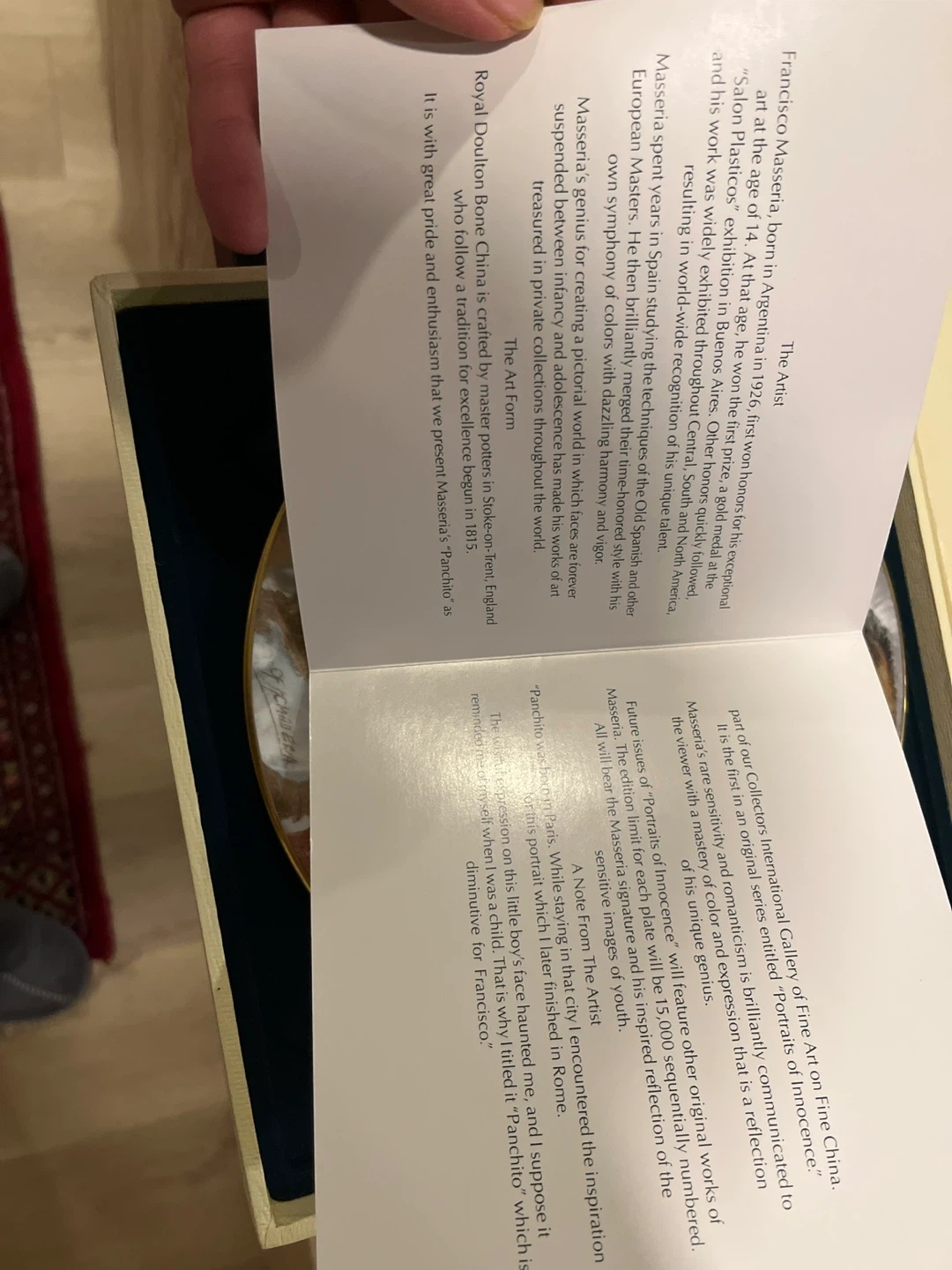 236Selling a Royal Doulton collector's plate titled 'Panchito'. This is a limited edition piece, and it comes with its original box and documentation. It's the first in a series from Collectors International. A beautiful piece for any collector!