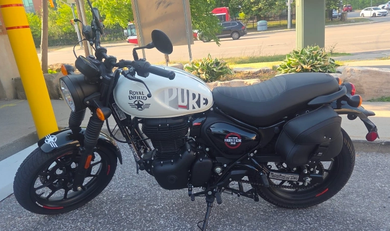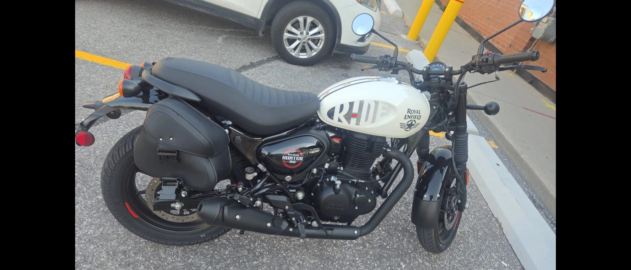 Selling a Royal Enfield Hunter 350 motorcycle! It's in great condition and ready for a new owner. This bike is perfect for city riding and weekend adventures. Feel free to message me with any questions! Almost Brand New only 400km Royal Enfield Hunter 350. I Just Bought in month of June only 3 Month. TOP in Condition 10/10. Comes with all Documents records. Comes with 50% discount on next year service. Comes with 3 years Factory Warranty. Comes with Ontario Vechical Package. Comes with company bill. Comes with add on Graphics and High Quality Saddle Bags. Will stand with your till registration so complete risk free buying. Selling As I have been Disgnose with some medical condition so need to avoid heavy airflow (Eyes and Ears) I am really sad to sell it but no option it my 1st Bike in Canada. Feel free to contact for any Question.