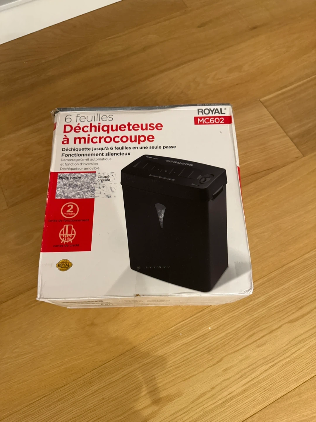 28Selling a Royal MC602 micro-cut shredder! It can shred up to 6 sheets in one pass and has a removable shredder for easy emptying. It also features silent operation and automatic start/stop with reverse function. Perfect for home or office use!