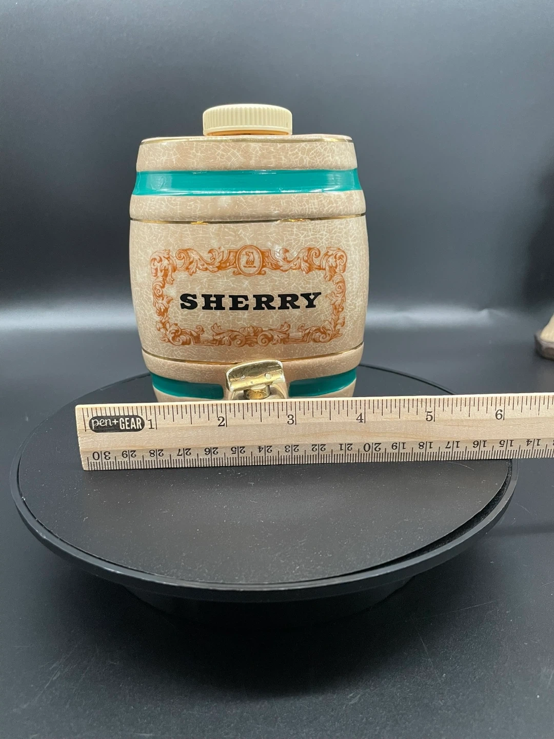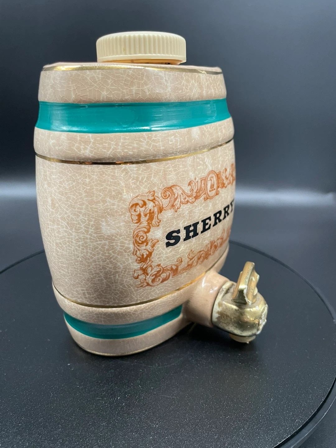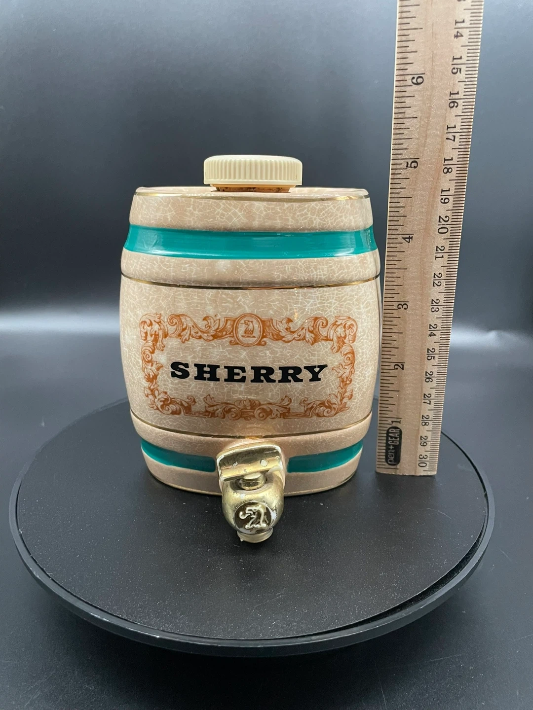 10Add a touch of vintage charm to your barware collection with this Royal Victoria Wade England Sherry Barrel Decanter. Crafted in England from ceramic pottery, this barrel-shaped decanter features a rich brown glaze, a removable lid, and a functional tap, making it both decorative and practical. Item Details: Brand: Wade Origin: England Type: Sherry Barrel / Decanter Material: Ceramic Color: Brown Era: 1970s Dimensions: Approx. 11.5 cm (4.5") tall x 11 cm (4.25") wide Features: Lid/Stopper, Tap Style: Art Pottery Backstamp: Impressed “Wade England” (varies by piece) Condition: Very good vintage condition with light age-related crazing. No chips or cracks. Tap and lid intact. Perfect for: Collectors of Wade pottery, vintage barware, or English ceramics. A great gift or display piece for a rustic kitchen or home bar. Ships securely and carefully packaged. Feel free to message with any questions or to request additional photos!