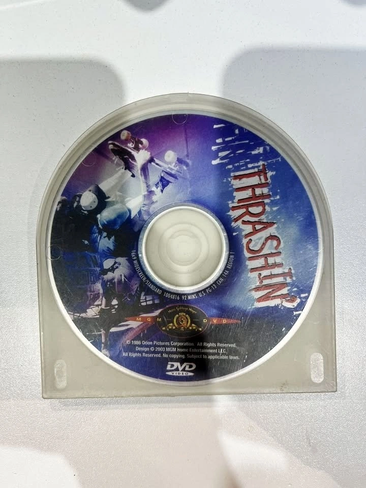 Original Thrashin’ DVD from 1986, a cult-classic skateboarding film. Disc only (comes in a slim protective sleeve, no original case). Disc shows some light surface wear from normal use but has been stored safely. Great pickup for skaters, collectors, or fans of vintage 80s films. DVD: Used. Sleeve included.