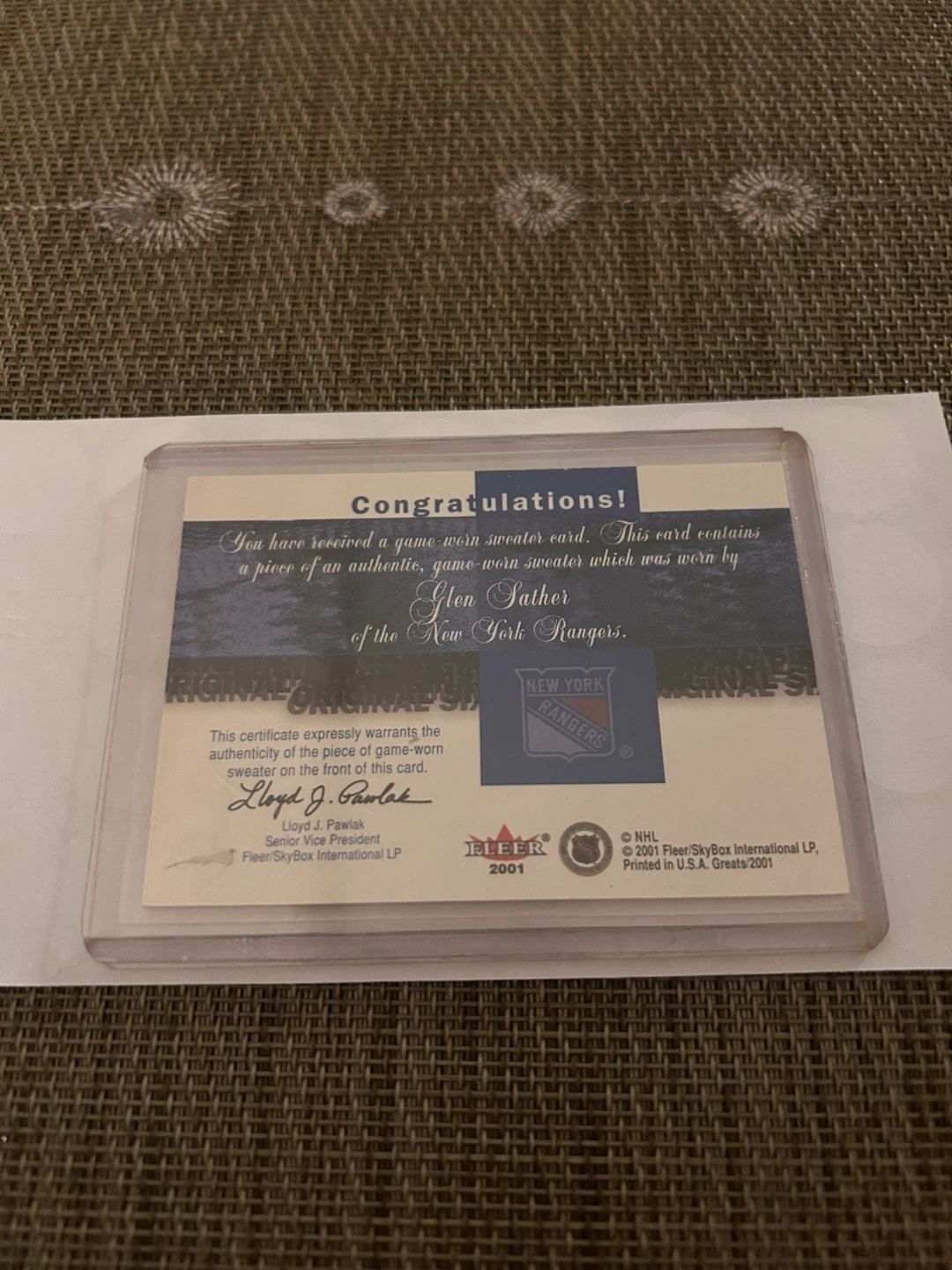 Glen Sather New York Rangers Authentic Game-Worn Sweater Card