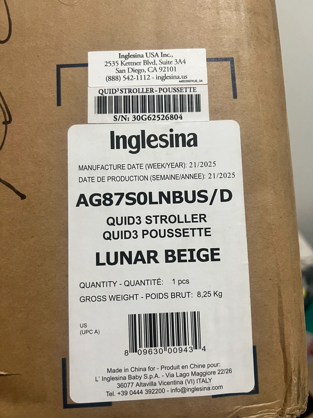 This Inglesina Quid³ stroller is in the Lunar Beige colour. It's a single unit, manufactured in 21/2025. This stroller is designed for easy jogging and strolling.