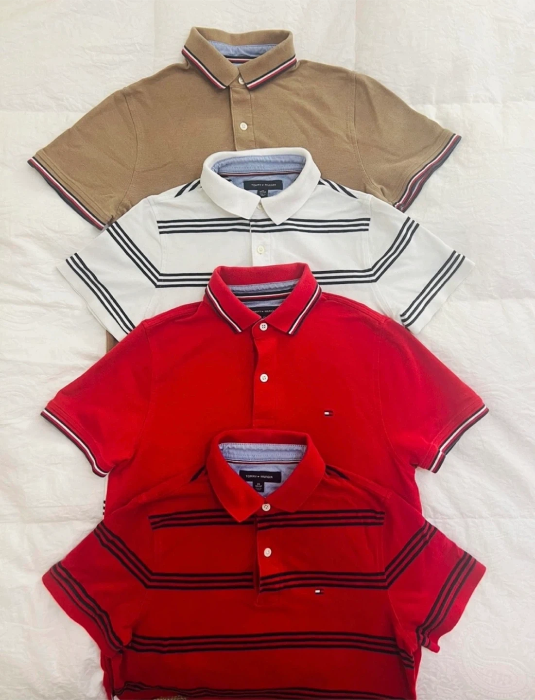4 Tommy Hilfiger polo shirts. Great condition like new. No stains or rips. Very clean. XS fits kids 12/14 .Retail price for each is $40
