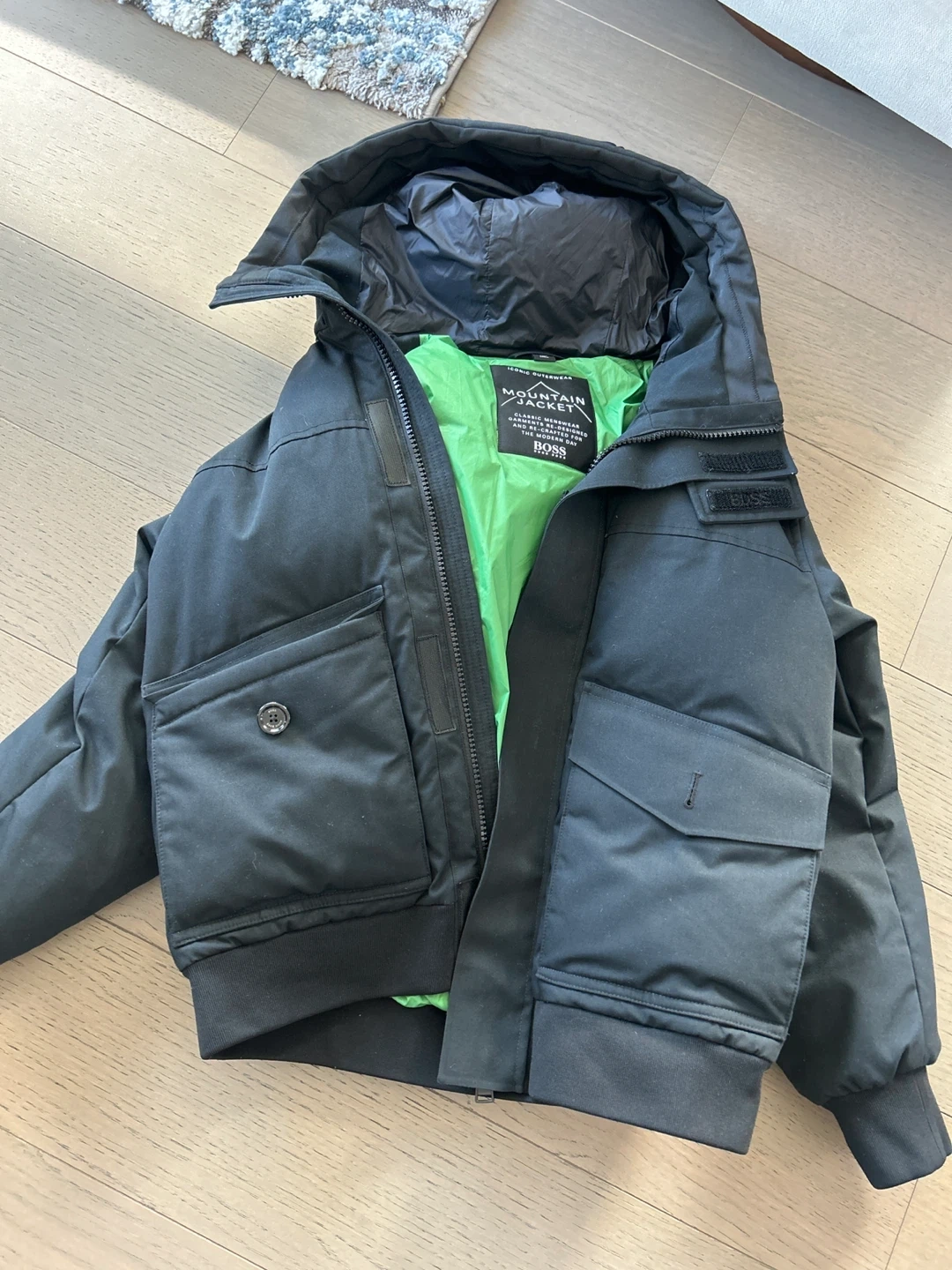 Selling a BOSS Mountain Jacket in black! It's in great condition and ready for a new owner. This jacket is a stylish and functional piece, perfect for keeping you warm and looking good