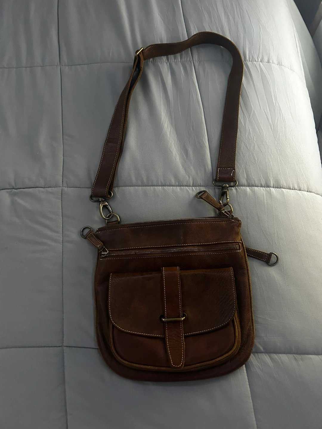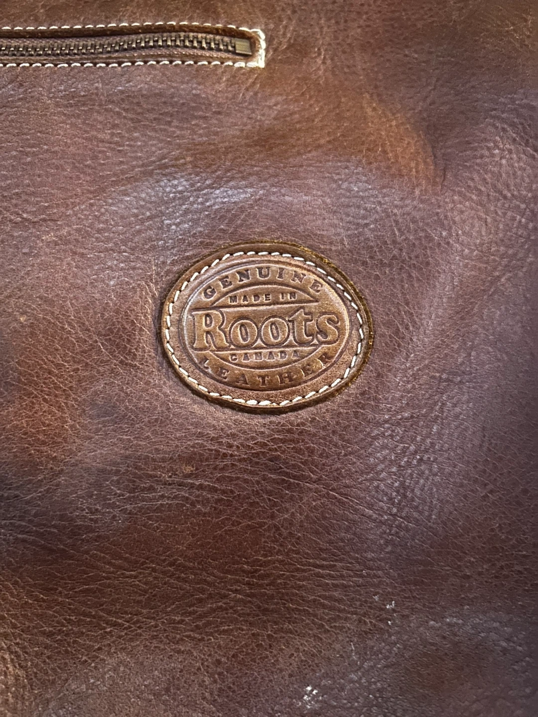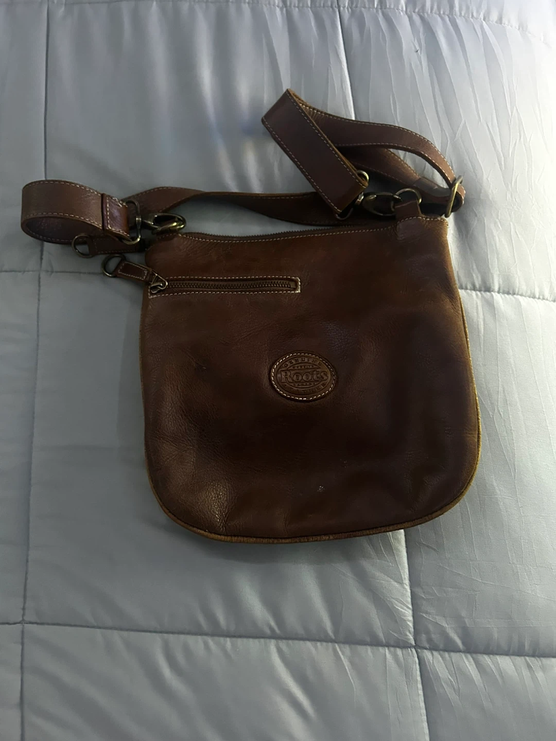 Selling a Roots crossbody bag made of genuine leather. It's a stylish brown colour, perfect for everyday use. The bag is in great condition and ready for a new home!