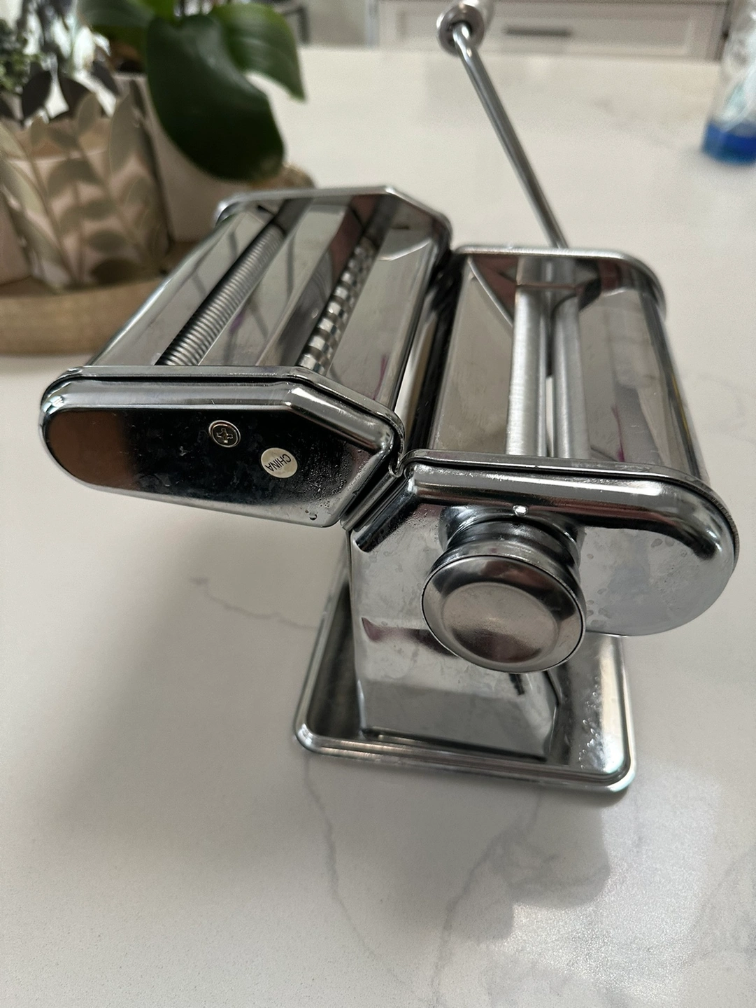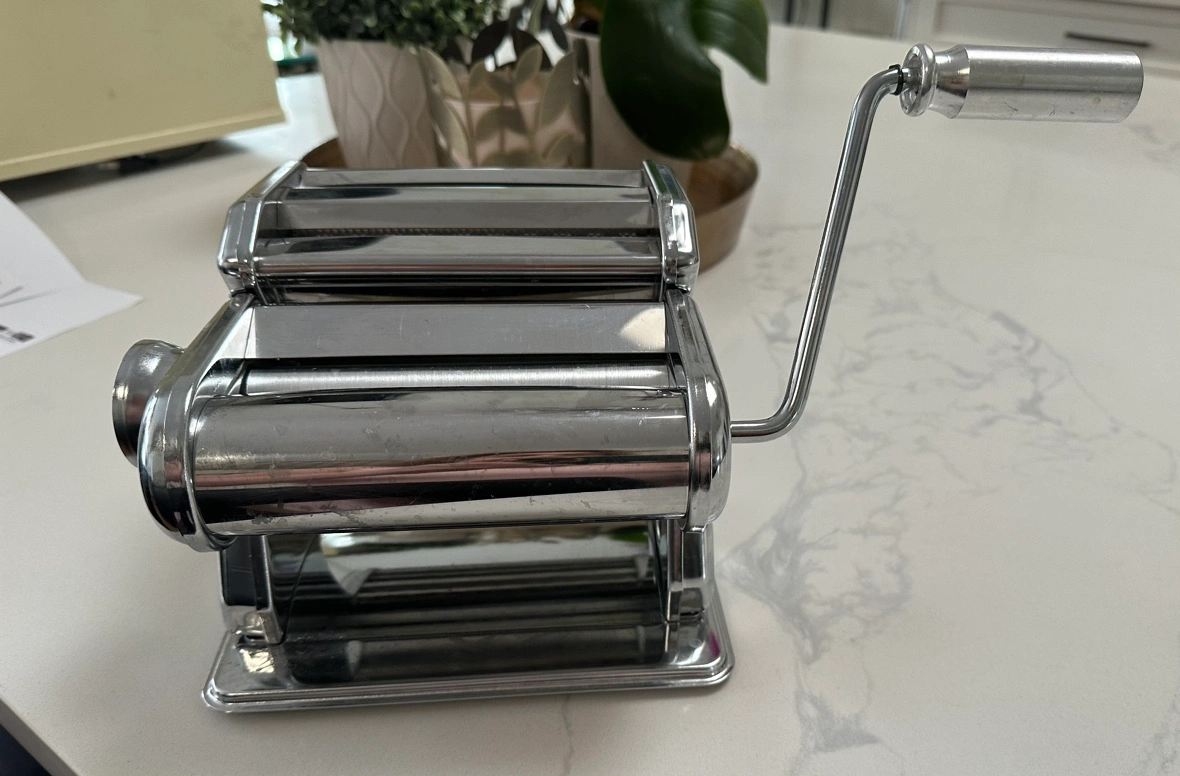 This is a manual pasta maker. It comes with a crank to roll out the dough. It is made of chrome best manual machine in very good condition. Pick up in Cranston Southeast smoke and pet Free.