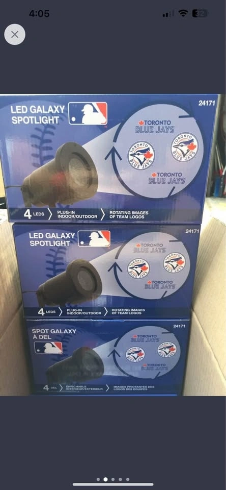 Brand new Toronto Blue Jays LED indoor/outdoor spotlight. Reduced to $10 each, or 3 for $25.