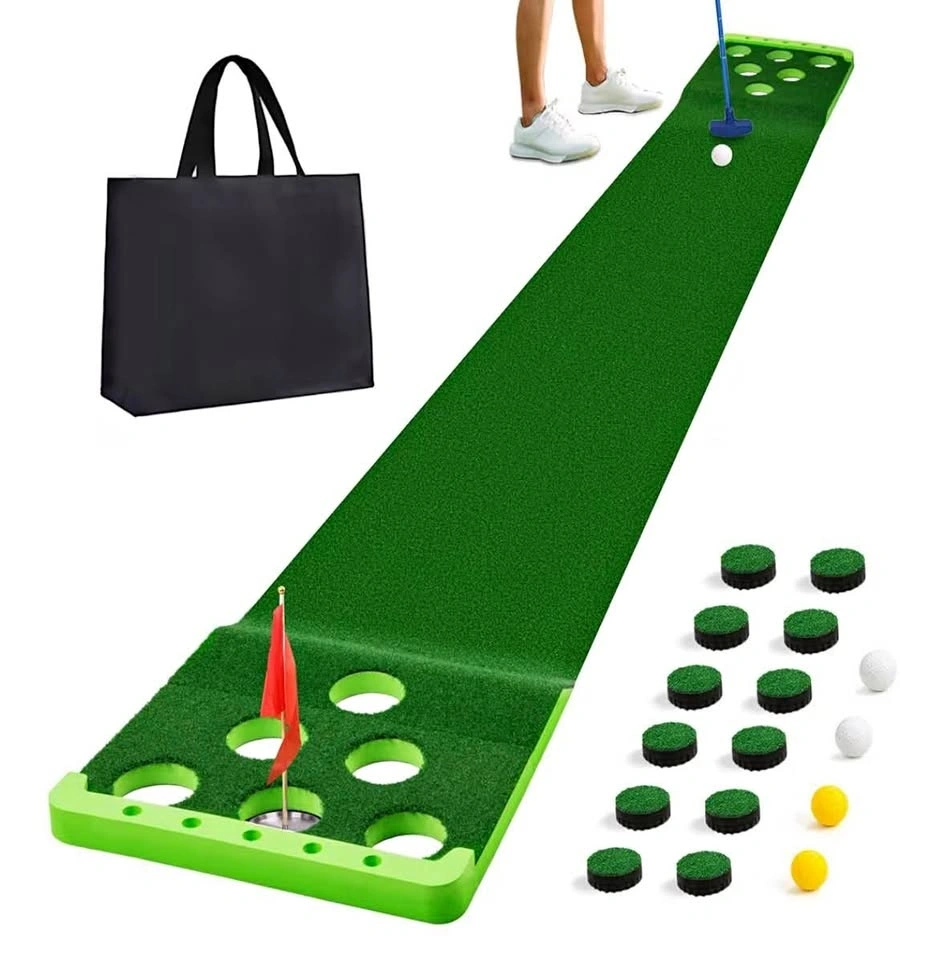 Golf Pong Putting Game Set with Front Border for Indoor & Outdoor use. Includes 3 Golf Balls (1 sponge), 1 Club & Portable Bag. Great for backyard, party, or office practice.