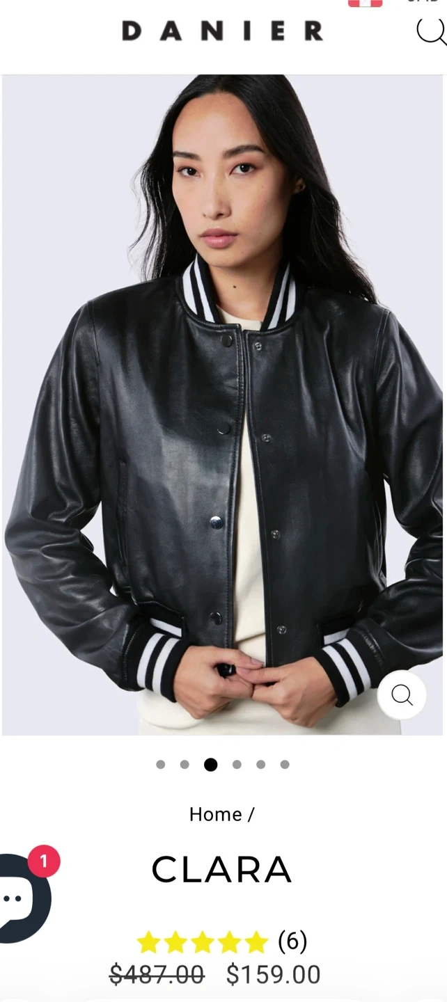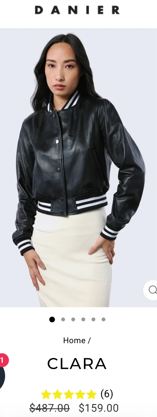 New with tags Danier CLARA Black Leather Bomber Jacket