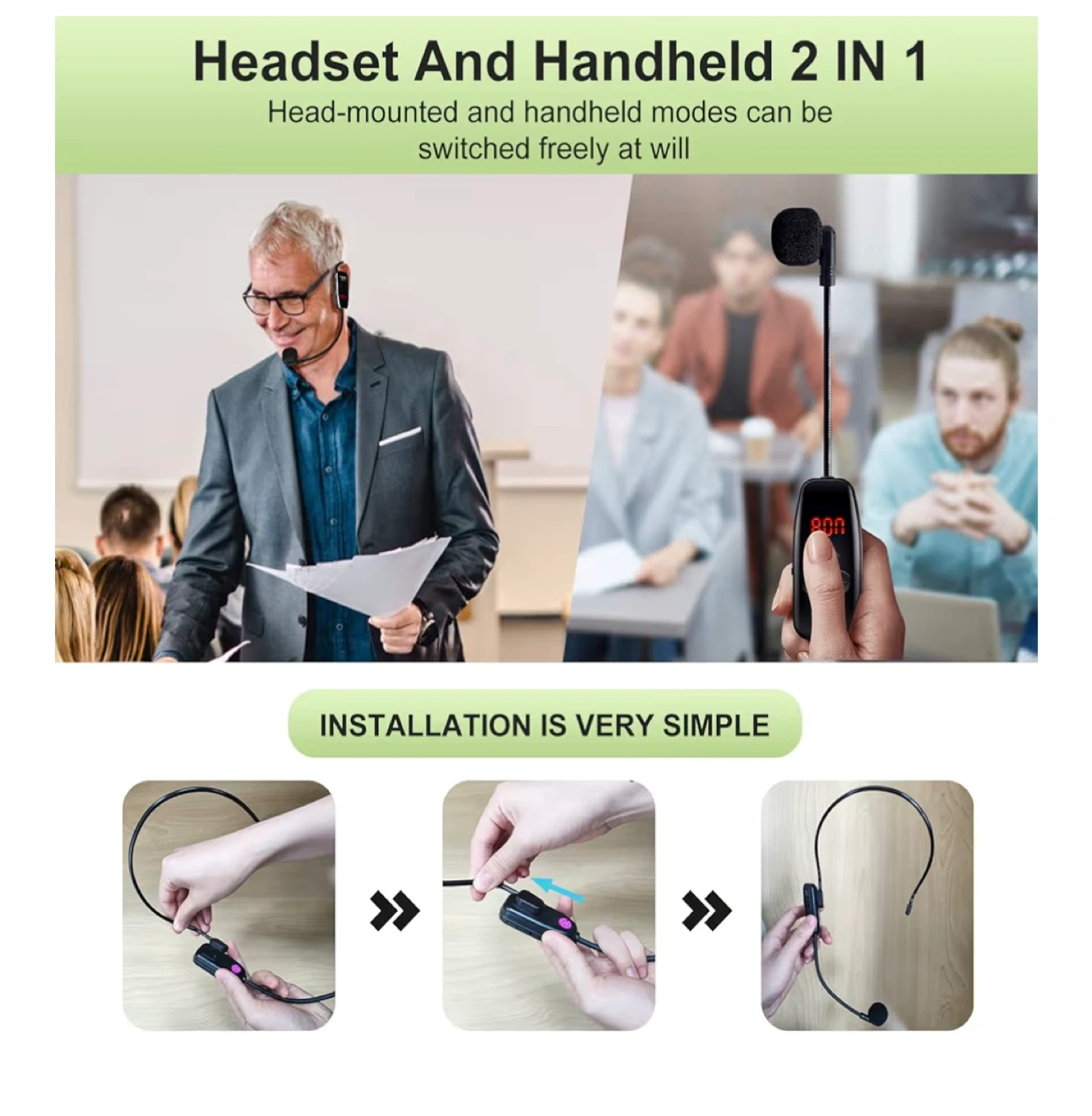 • Professional Microphone: The wireless microphone is compatible with voice amplifiers, multimedia devices, speakers with microphone input jack. It is very suitable for classroom teaching, lectures, large conferences, sports and fitness, promotion activities, tour guide commentary.