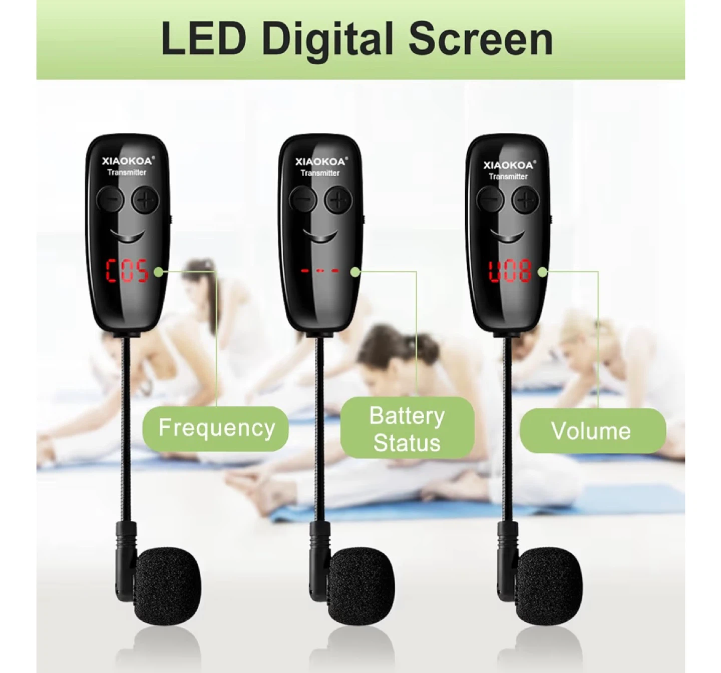 • LED Digital Display: The microphone has a LED digital screen. It can clearly display volume, frequency and battery level. Simple and convenient to use. (Note: that mobile phones/Macbooks/laptops are not supported.)
