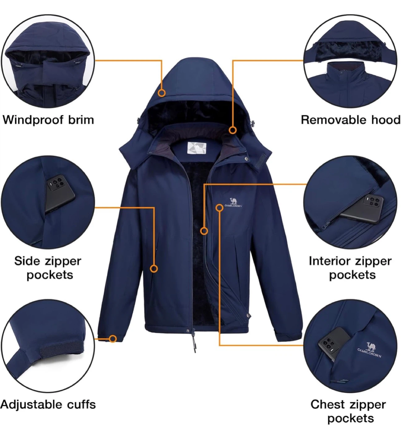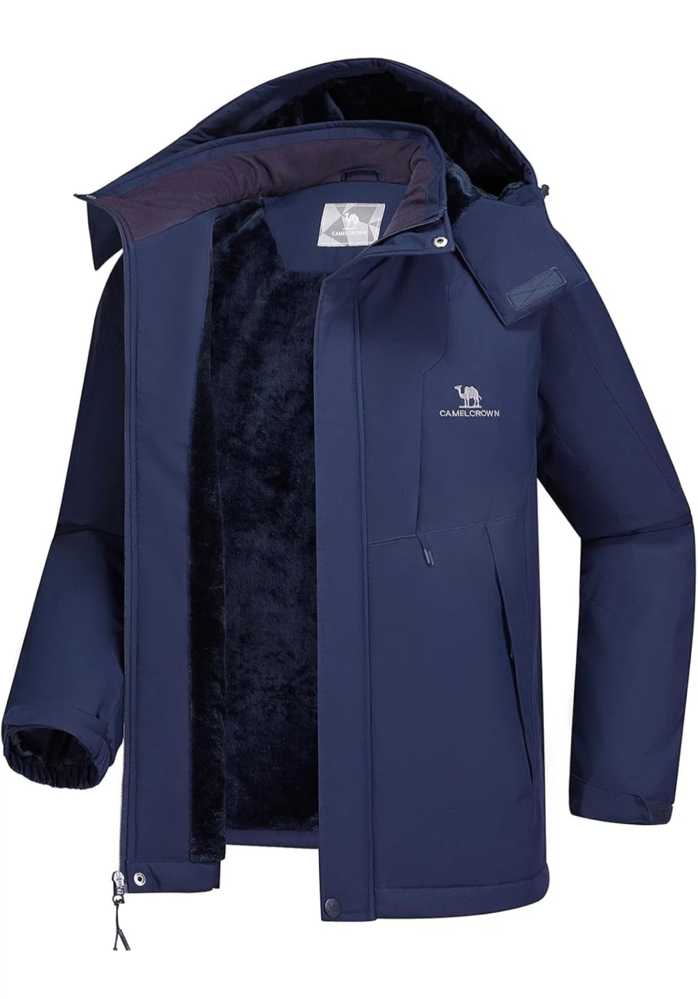 New with tag! Stay warm and dry in this Camel Crown winter jacket. It's waterproof and windproof with a fleece-lined interior for extra warmth. Features include a removable hood, adjustable cuffs, and multiple zipper pockets for secure storage. It's designed for cold weather adventures!