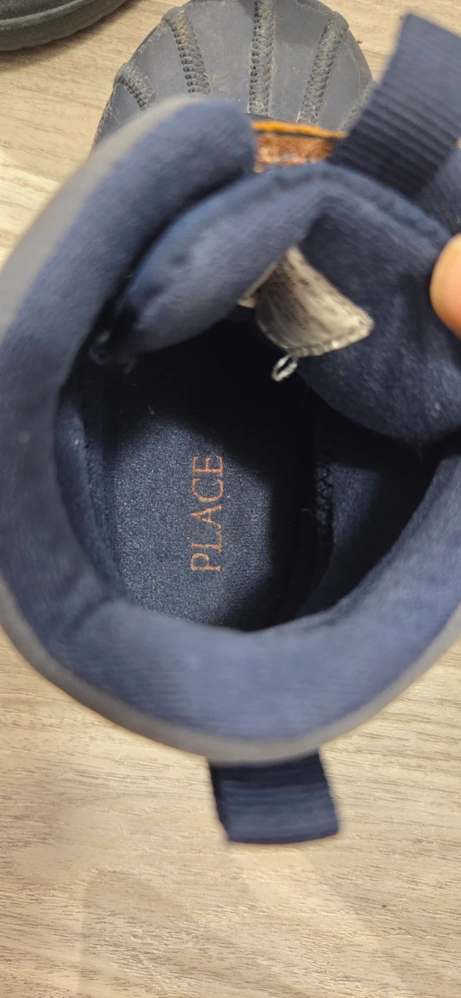 These toddler winter boots are in good condition and ready for some snowy adventures! They feature a classic duck boot design with a navy and orange colour scheme. Perfect for keeping little feet warm and dry this winter