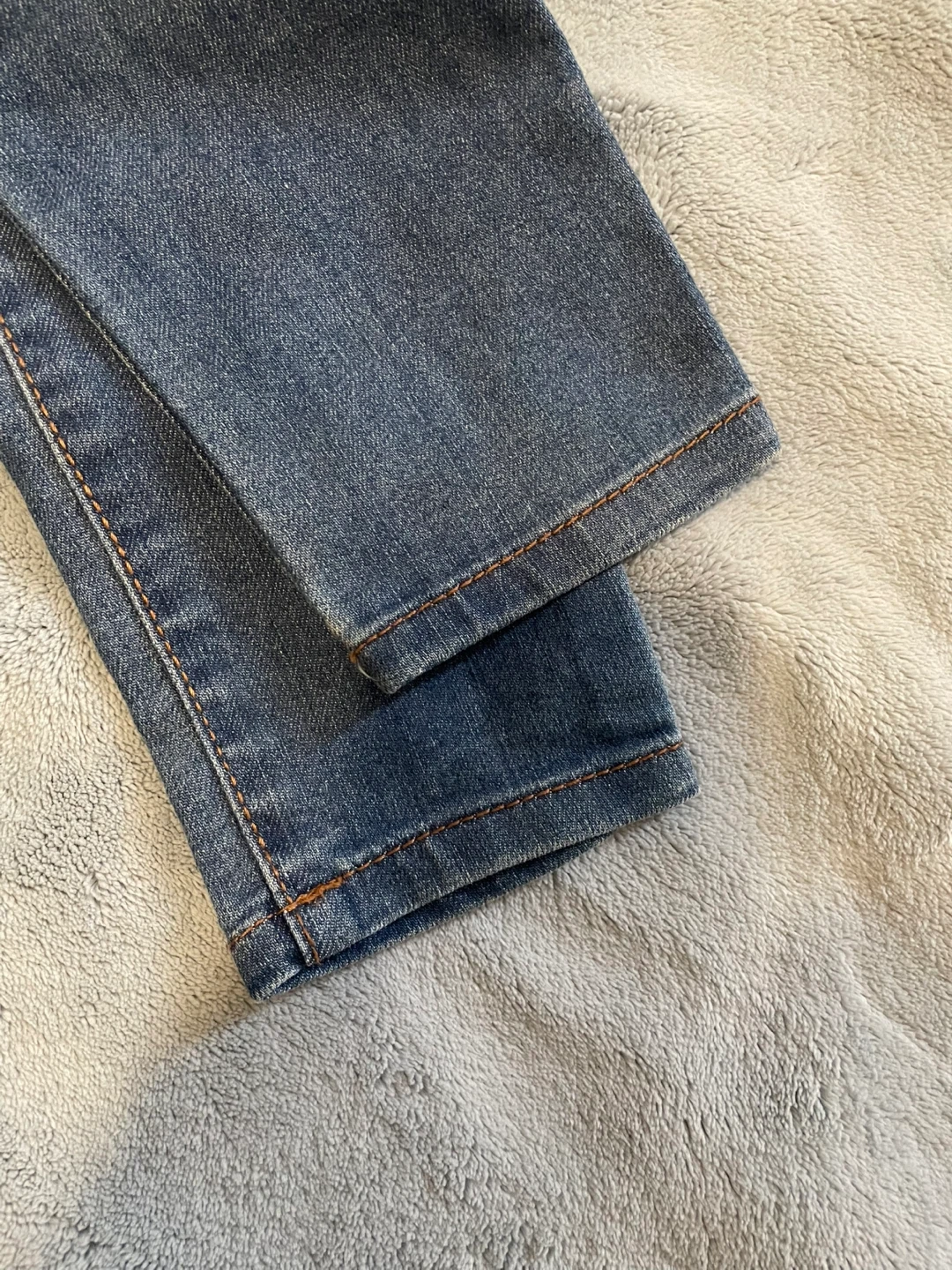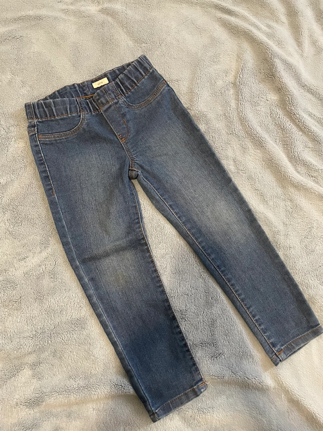 These are girls' denim jeggings with an elastic waistband. They're made of a comfortable stretchable denim material. Kids can wear these for everyday activities.