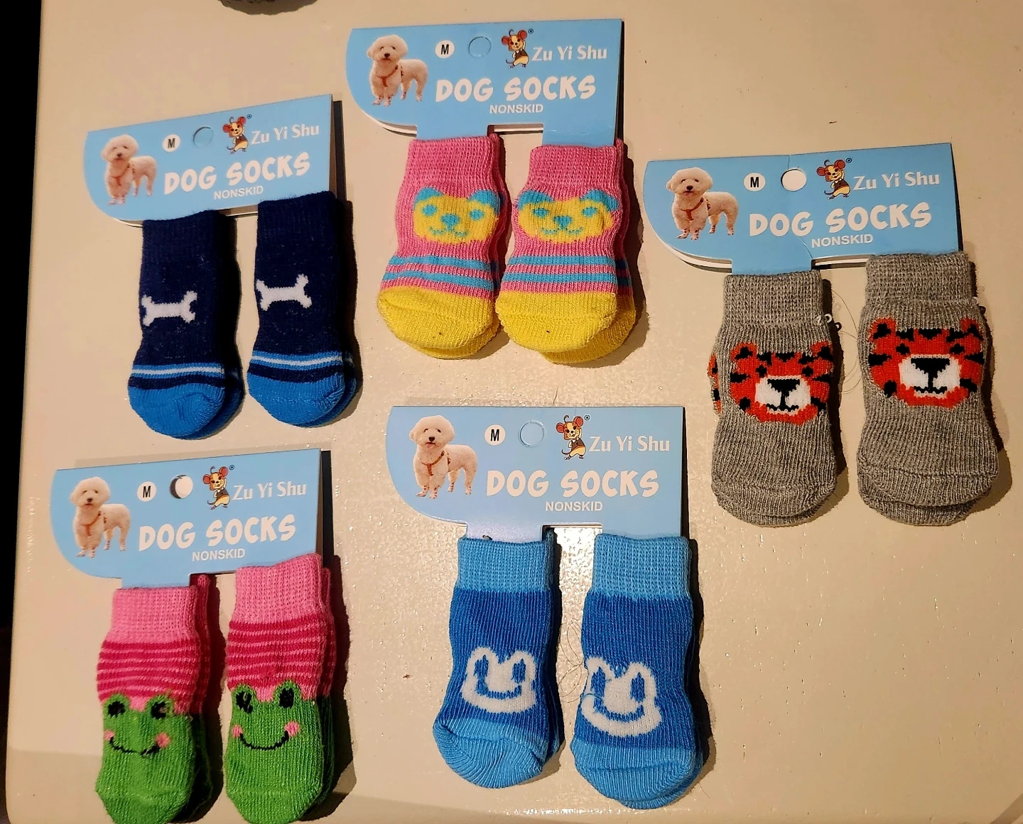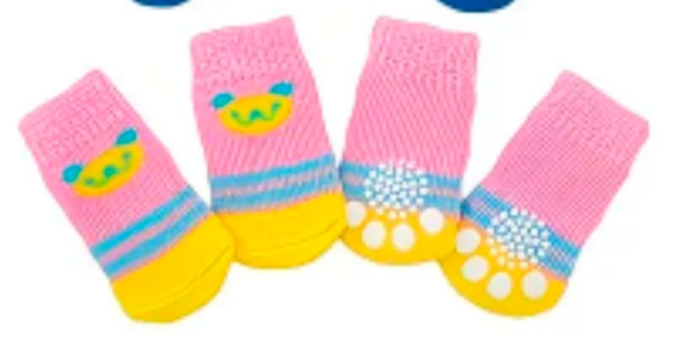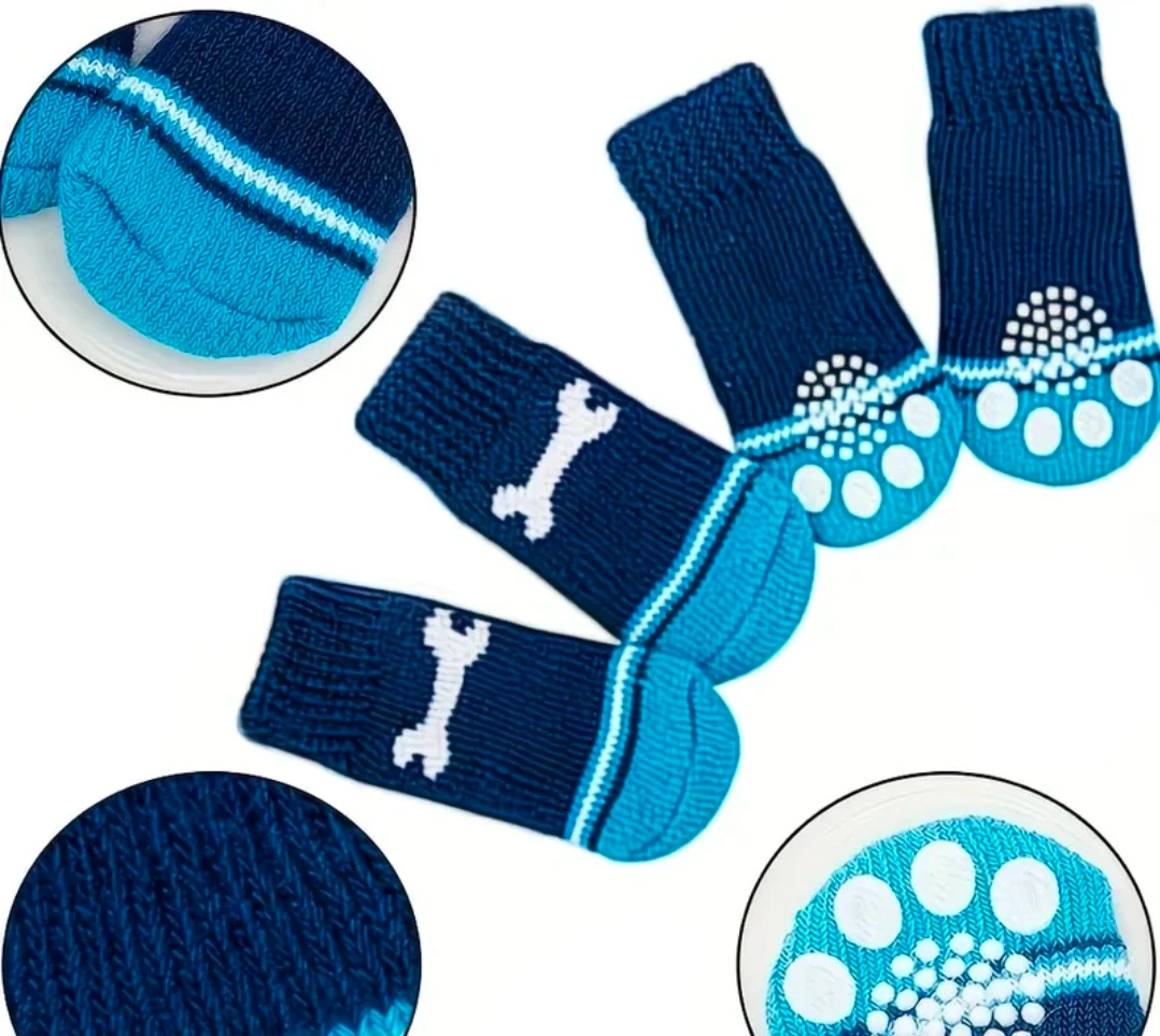 Paws-itively adorable set of 5 dog socks! ๐พ Featuring non-skid paw pads for traction and available in multiple fun designs and colors. These are a size medium, but they didn't quite fit my pupโplease double-check the measurements shown to ensure a perfect fit for yours! The price is for the whole set, not individual socks.