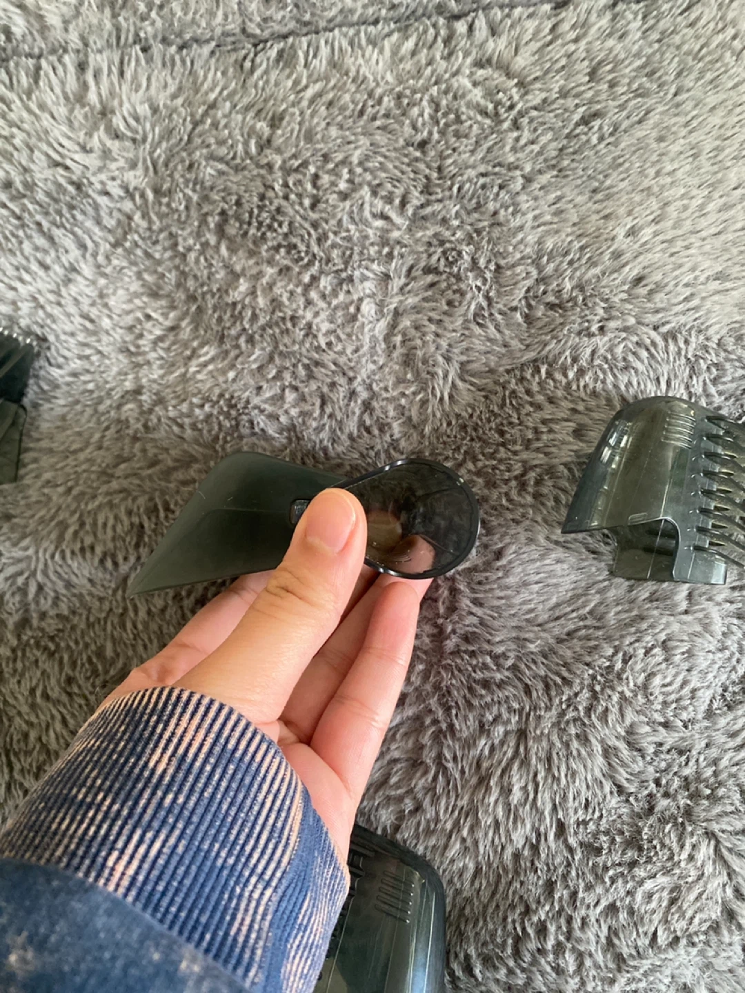 (OPEN TO OFFERS βοΈβοΈ) This is a Philips Norelco Multigroom trimmer. It comes with four different comb attachments for various lengths. The trimmer features a sleek grey and yellow design.
