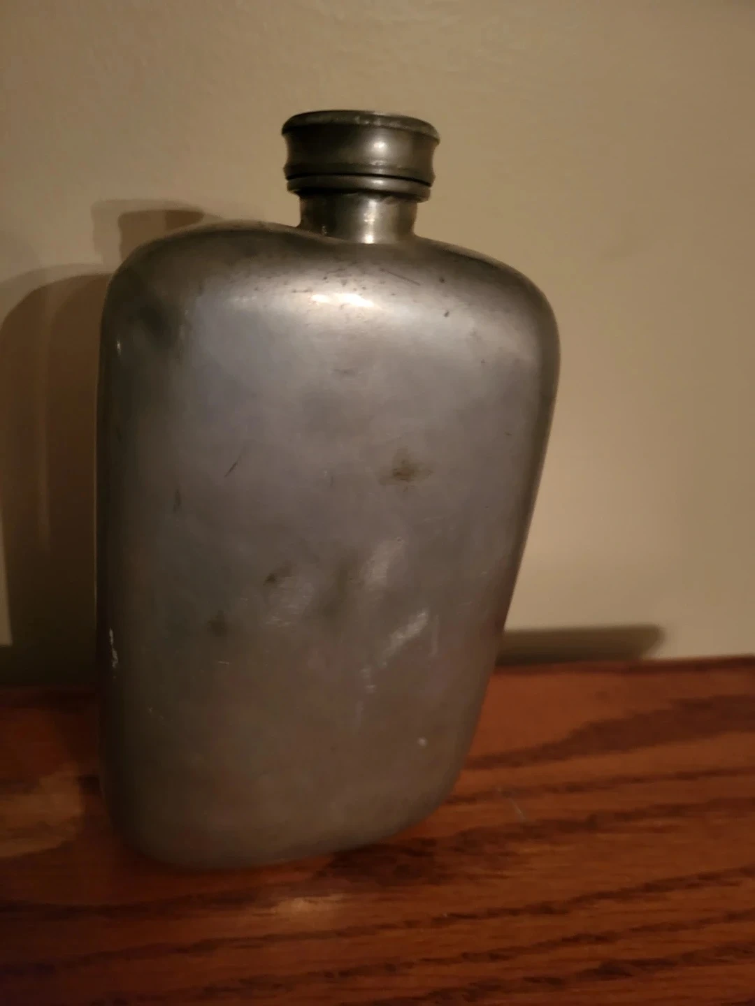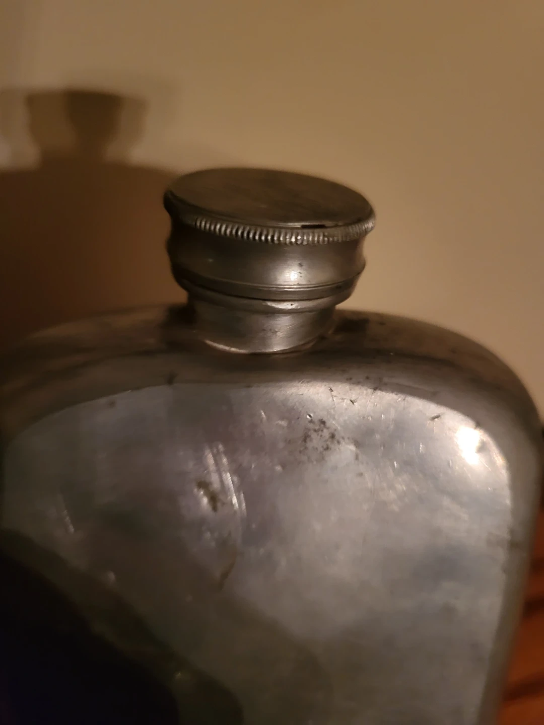 Material: The flask is likely made of silver-plated metal, common materials for these antique items.