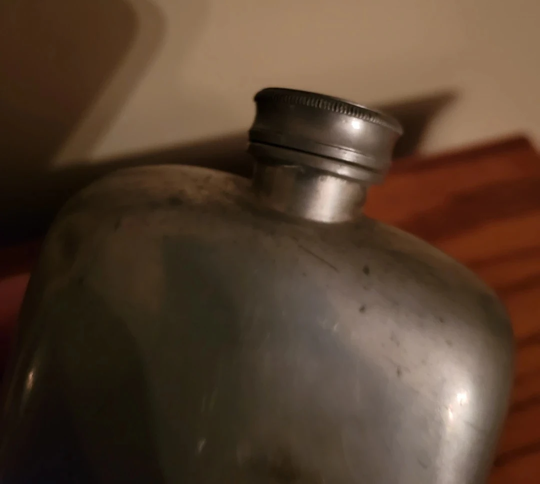 Material: The flask is likely made of silver-plated metal, common materials for these antique items.