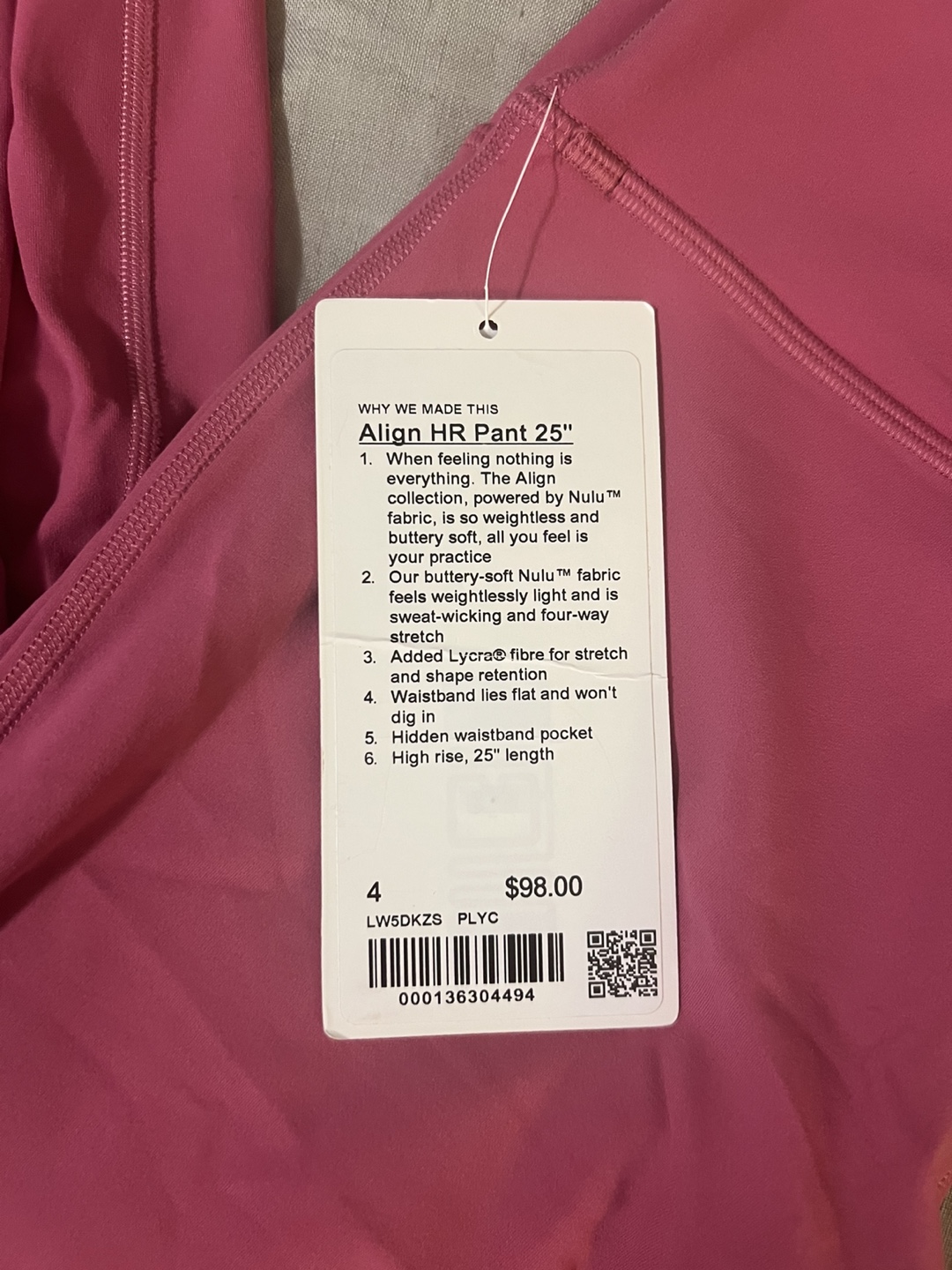 NWT Lululemon Align High-Rise Pant 25" - size 4