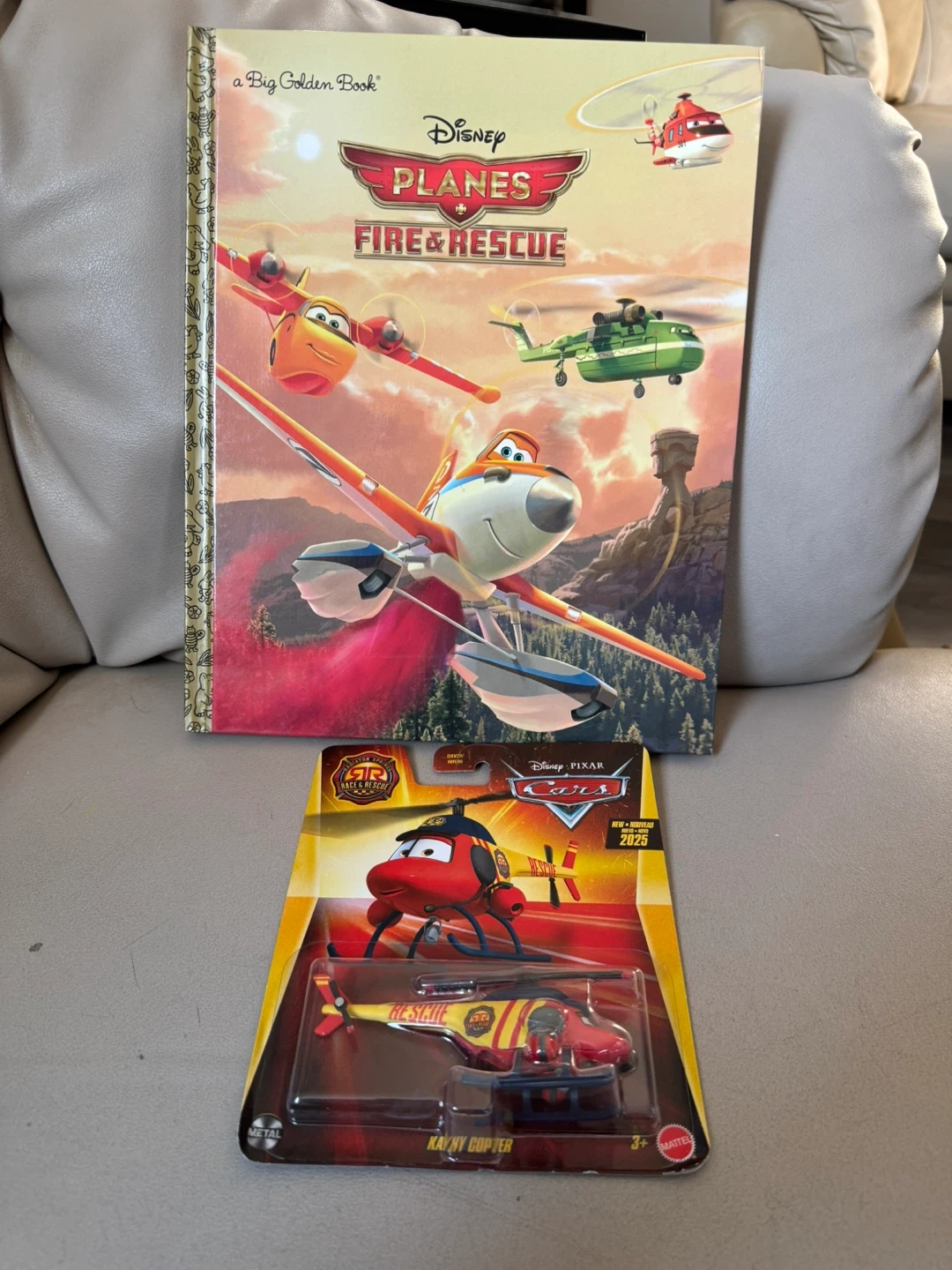 Selling a Disney Planes Fire & Rescue book, a Big Golden Book! Also included is a Disney Pixar Cars Radiator Springs Race & Rescue mattel Kathy Copter