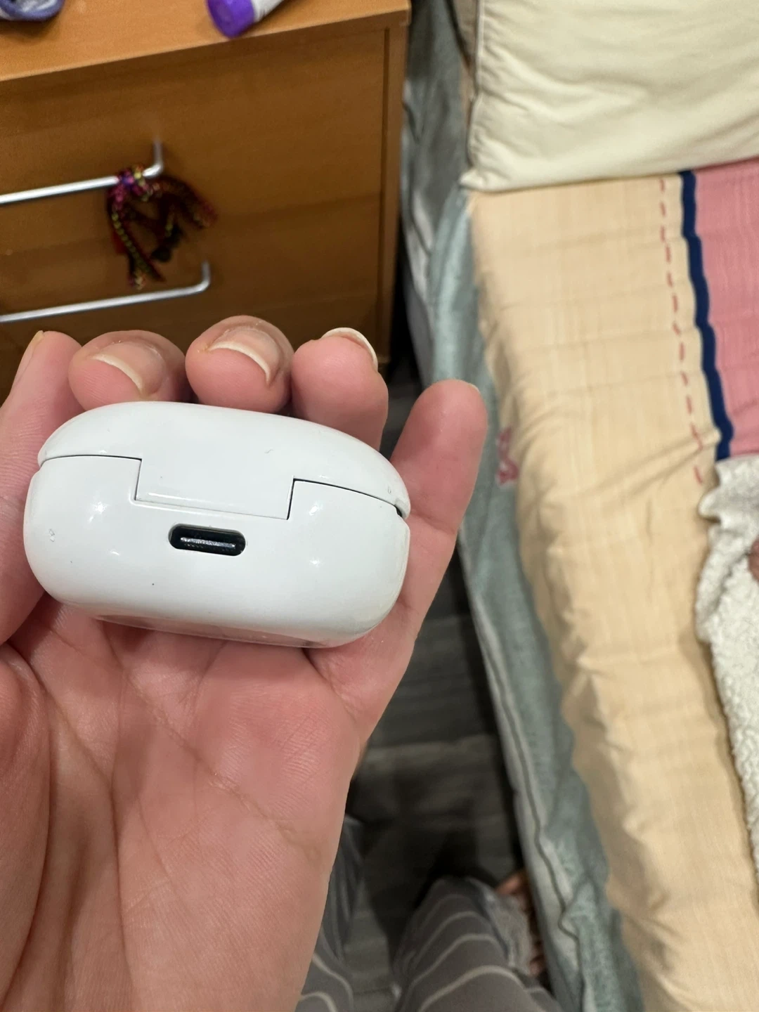 This is a white charging case for Samsung Galaxy Buds Pro. It's powered by AKG and features a USB-C charging port. The case is designed to charge your earbuds on the go.