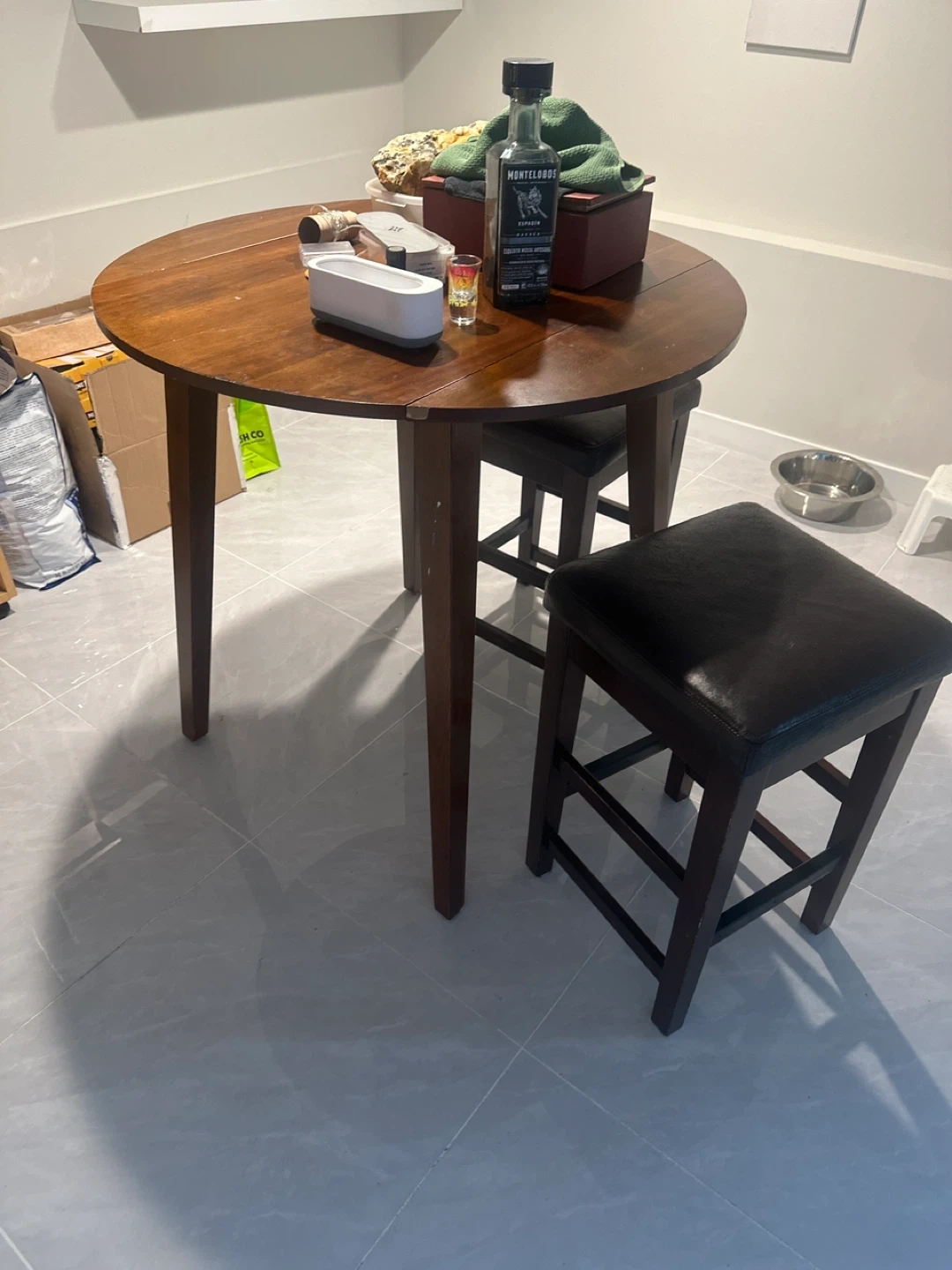 Buy & SellDark Wood Dining Table with LeafDark Wood Dining Table with Leaf$85Solid dark wood dining table with a drop leaf feature. Seats four comfortably when leaf is down. Includes two dark faux leather upholstered stools.ConditionLike newWHERE TO MEETNorth pocoView MapSELLERverifiedPatrickPort Coquitlam1084 reviews0 chats·1 favorites·10 viewsSEND CHAT TO SELLERHi Patrick! I’m interested in your listing.Hi Patrick! I’m interested in your listing.Get the Karrot app to chatSign In to chat