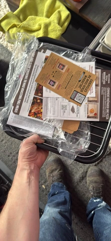 Brand new, never used. Has all original tags and packaging for the accessories. Perfect for making delicious pizza or smoking your favorite foods right in your backyard. Comes with pizza peel, oven cover, and manuals.