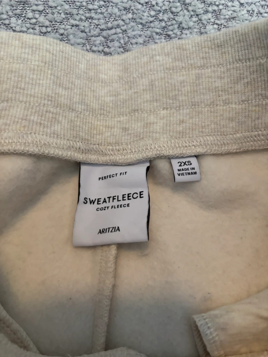 These Aritzia sweatpants are made with cozy fleece for ultimate comfort. They're a size 2XS and were made in Vietnam. Perfect for lounging at home or casual outings!