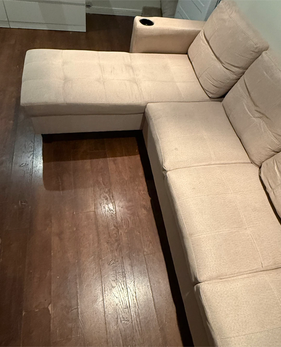 Comfortable and practical sectional sofa in a neutral beige colour that fits easily into most living spaces. Perfect for relaxing, hosting, or stretching out after a long day.