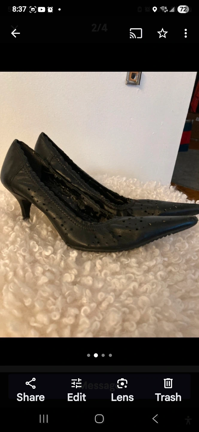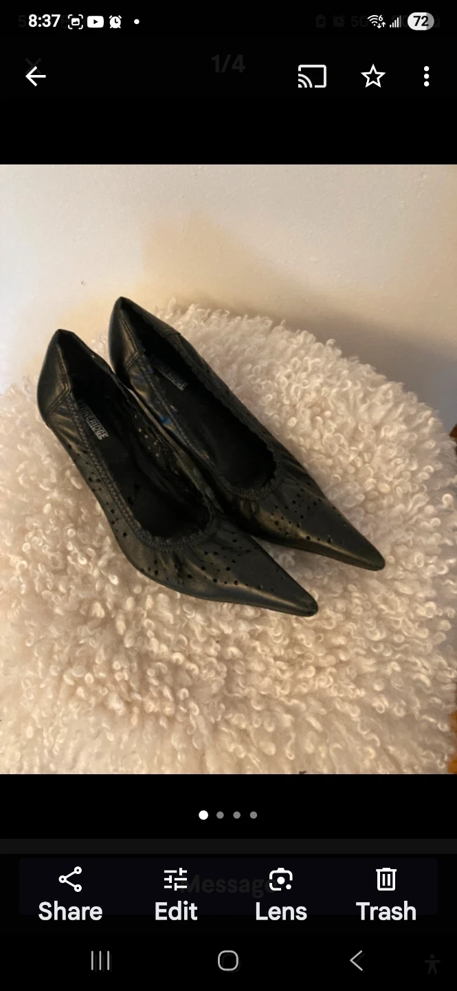 Stylish black leather heels with a pointed toe and perforated detail. These shoes feature a comfortable heel height, making them suitable for various occasions. The outsole is made of durable rubber.