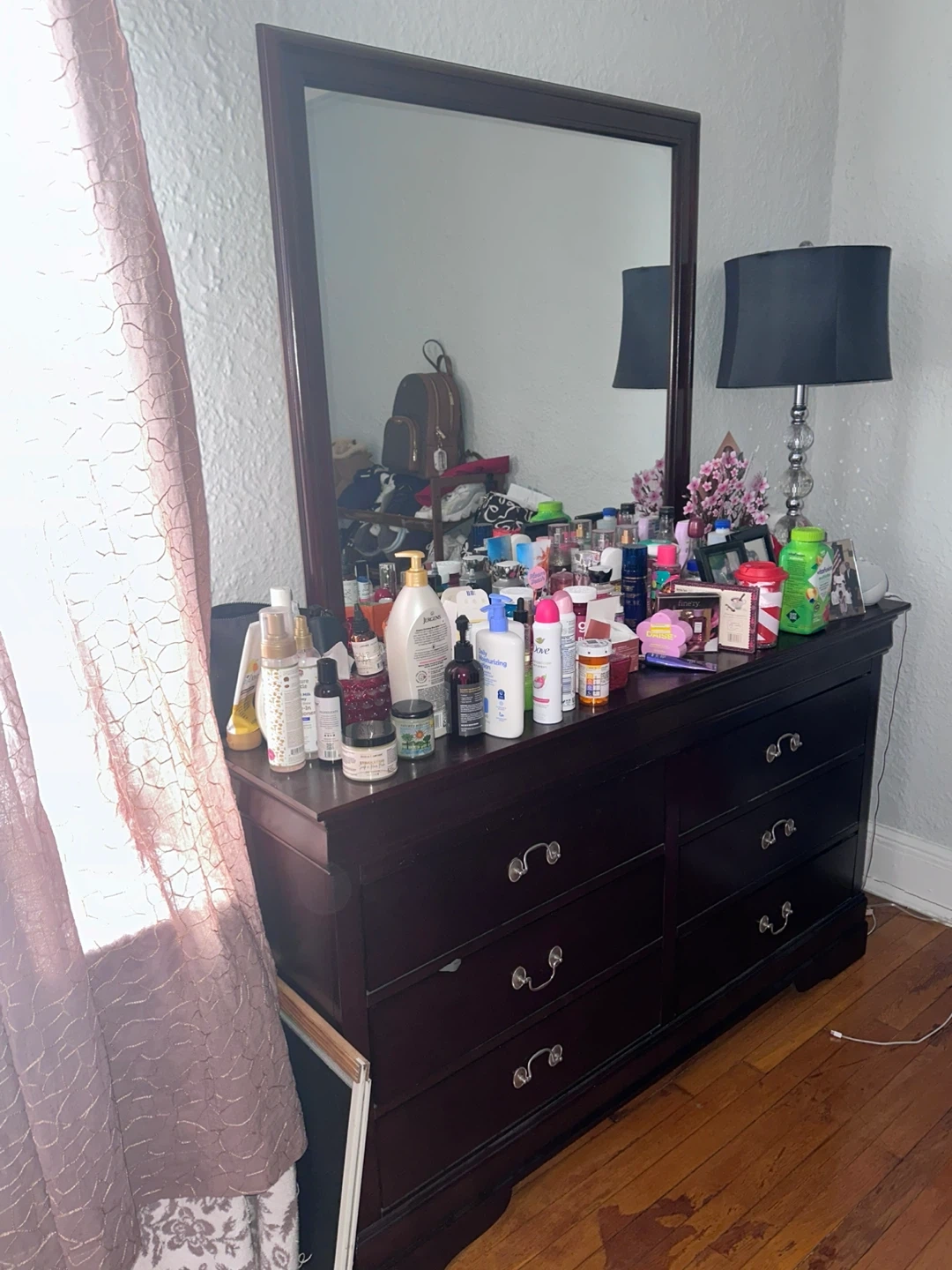 Buy & SellDark Brown Dresser with MirrorDark Brown Dresser with Mirror$200Spacious dark brown dresser with a large mirror. It features six drawers for ample storage. The dresser is made of wood and has silver-toned hardware.ConditionGoodWHERE TO MEETCheck LocationView MapSELLERverifiedKoyaMt Vernon1337 reviews0 chats·1 favorites·18 viewsSEND CHAT TO SELLERHi Koya! I’m interested in your listing.Hi Koya! I’m interested in your listing.Get the Karrot app to chatSign In to chat