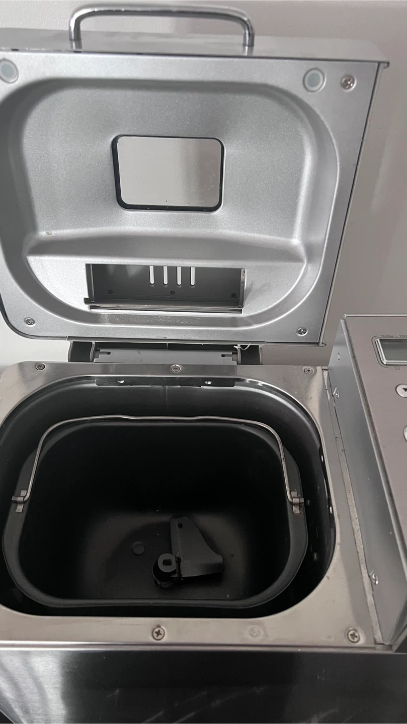 This Breadman bread maker is made of stainless steel and has multiple bread settings. It has a digital display and easy-to-use buttons for selecting your desired program. Makes fresh bread at home!