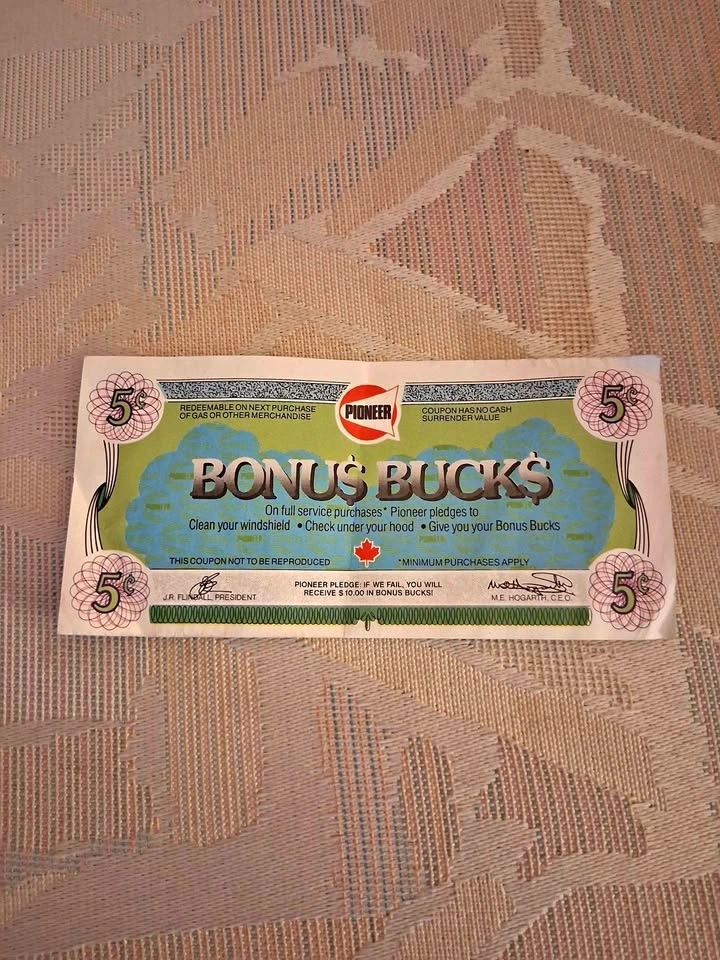 Buy & SellVintage 1996 Pioneer Bonus Bucks 5¢ couponVintage 1996 Pioneer Bonus Bucks 5¢ coupon$6Available for pickup/public meetup in Mississauga. Cash and E Transfer accepted.WHERE TO MEETBud Gregory Boulevard & Gatineau AvenueView MapSELLERRobert EHurontario717 reviews0 chats·0 favorites·3 viewsSEND CHAT TO SELLERHi Robert E! I’m interested in your listing.Hi Robert E! I’m interested in your listing.Get the Karrot app to chatSign In to chat