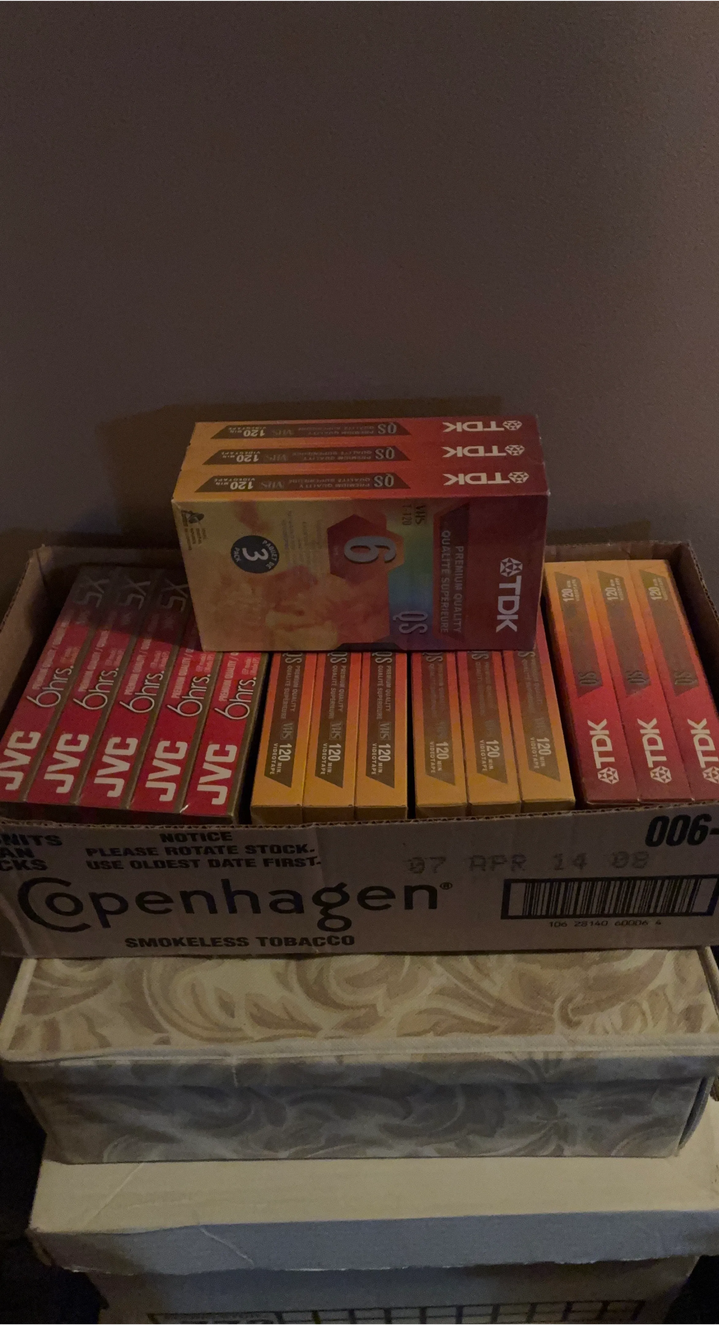 This lot includes TDK OS and JVC 6hrs VHS videotapes, all 120 minutes long. All are in original packaging. 17 total
