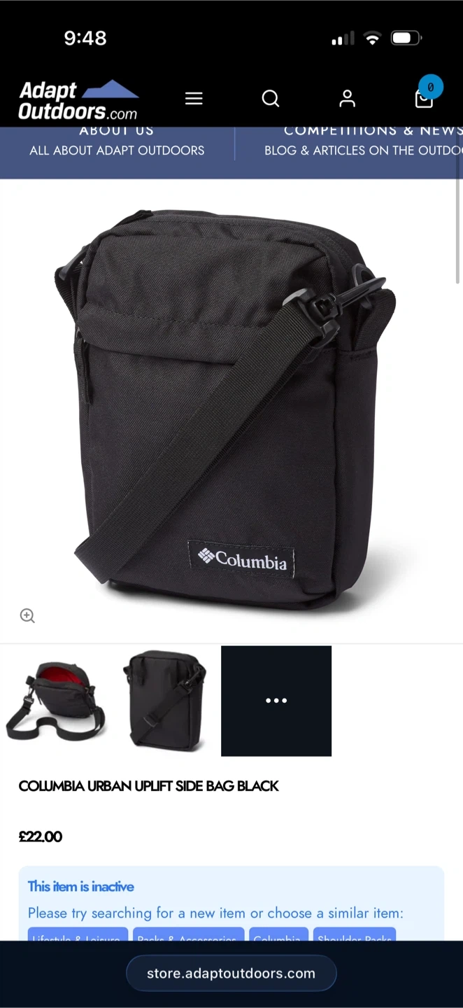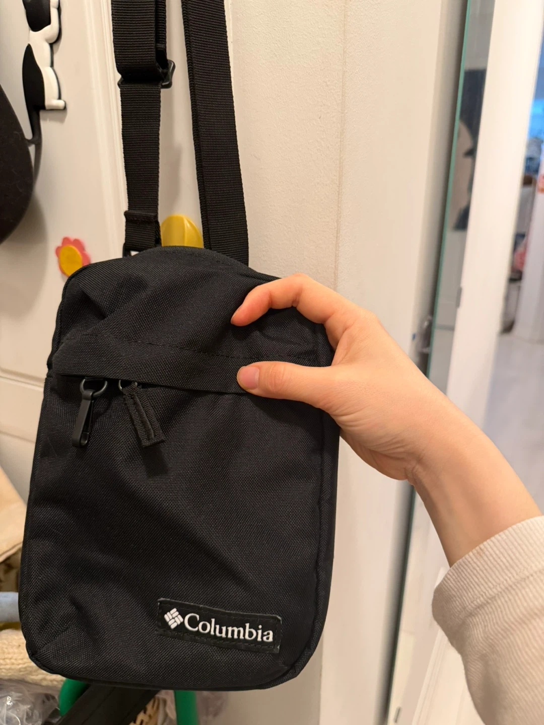 This is a black Columbia Urban Uplift side bag. It's made of durable material and features a zippered main compartment with an interior mesh pocket. An adjustable shoulder strap ensures comfortable wear. It's suitable for carrying daily essentials.