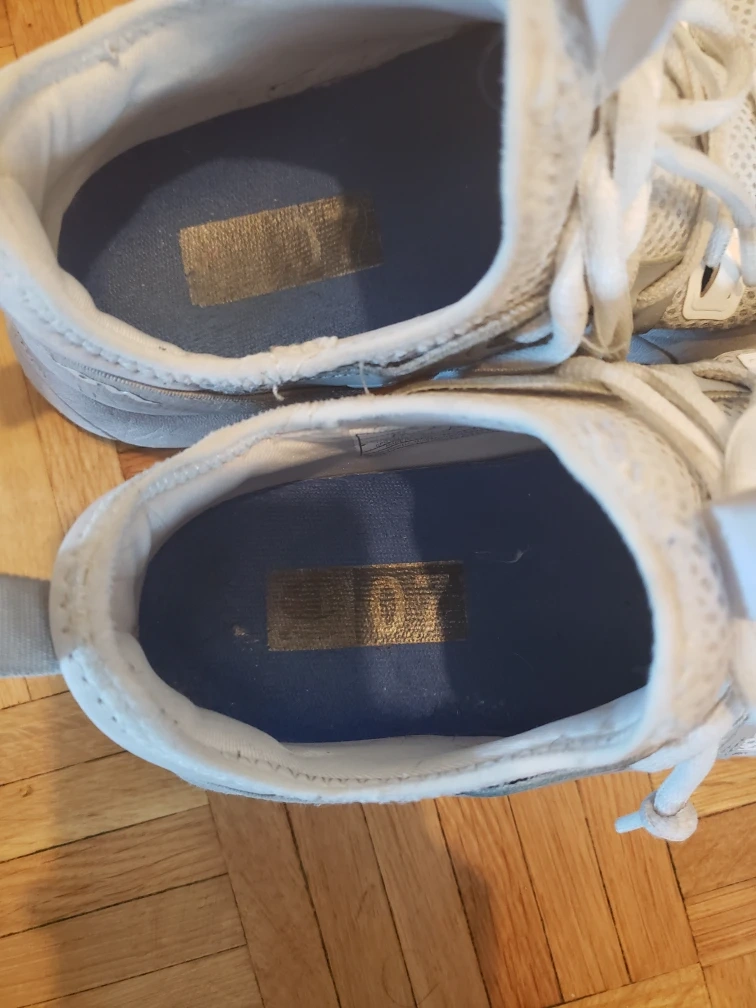 A pair of used white running shoes. They have some wear and tear as you can see in the photos. Great for casual jogs or everyday wear!
