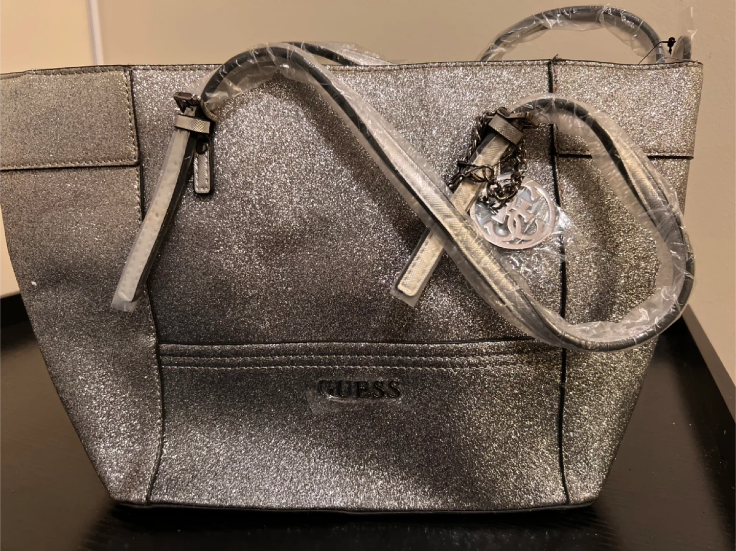 New Guess Silver Glitter Tote Bag