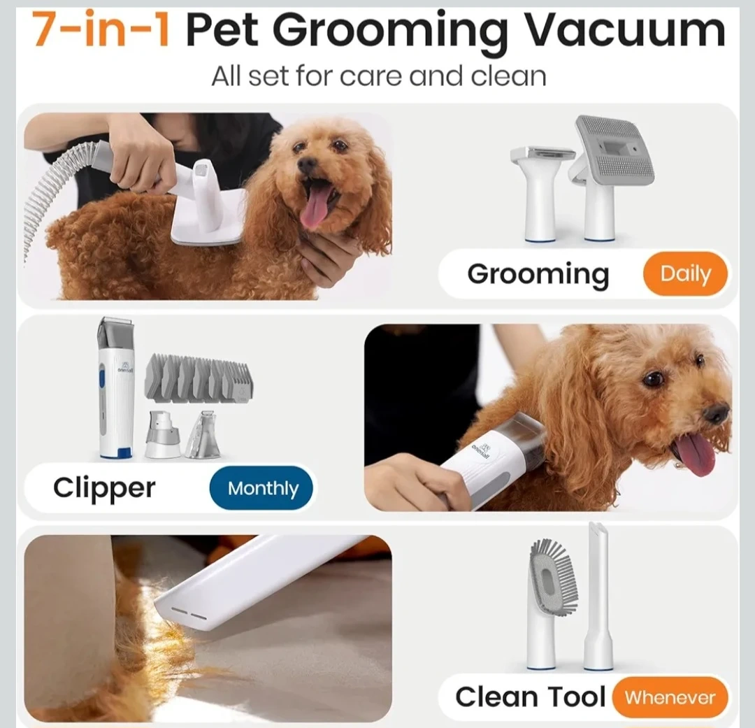 oneisall Dog Grooming Vacuum Kit - Clippers + 7 Tools