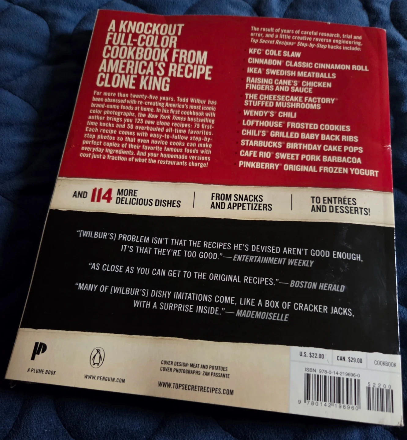 This cookbook features 125 clone recipes from popular restaurants and dishes, complete with photos to guide you. It includes recipes from snacks and appetizers to entrées and desserts. This book is perfect for home cooks looking to recreate favourite meals.