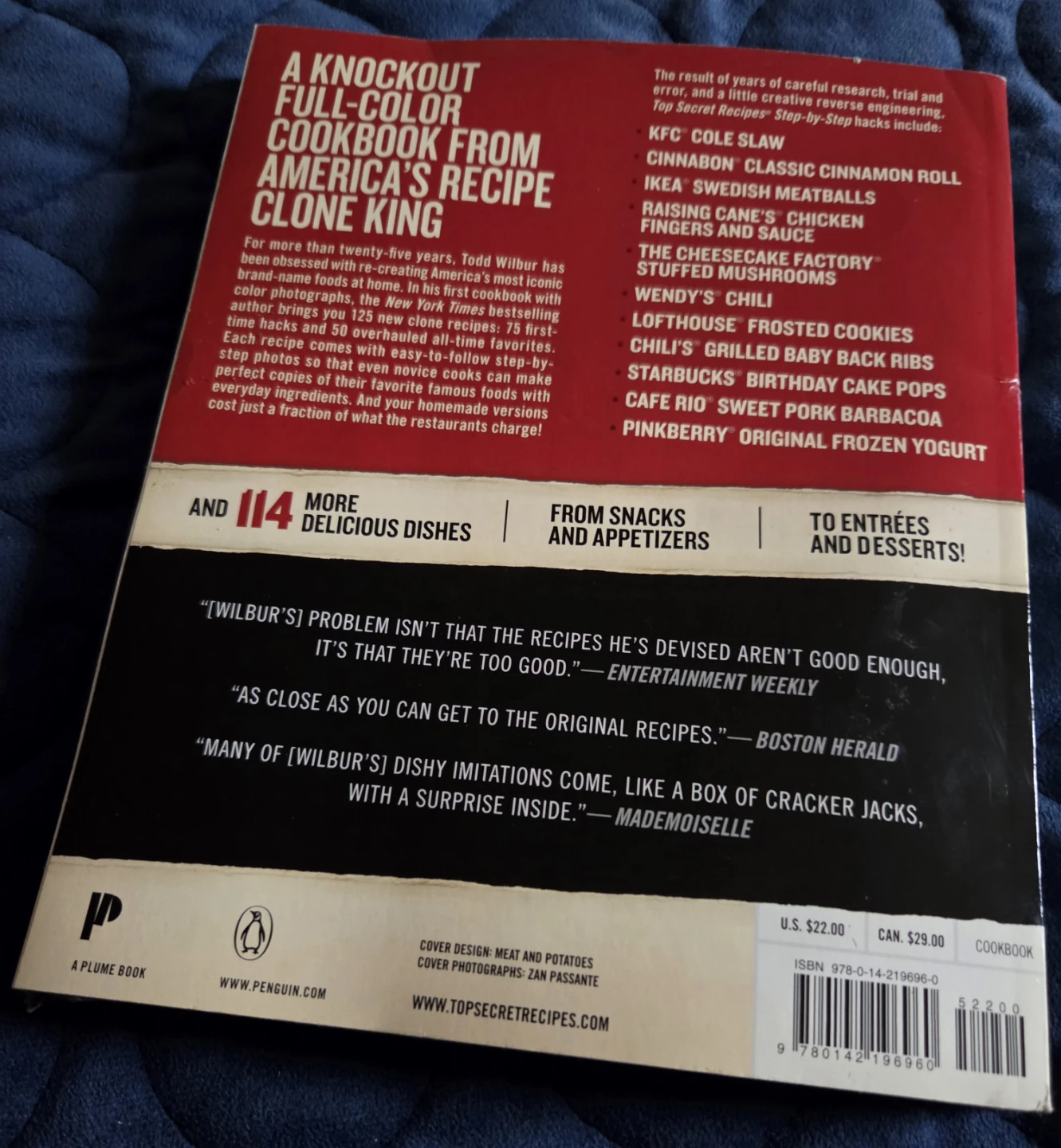 This cookbook features 125 clone recipes from popular restaurants and dishes, complete with photos to guide you. It includes recipes from snacks and appetizers to entrées and desserts. This book is perfect for home cooks looking to recreate favourite meals.
