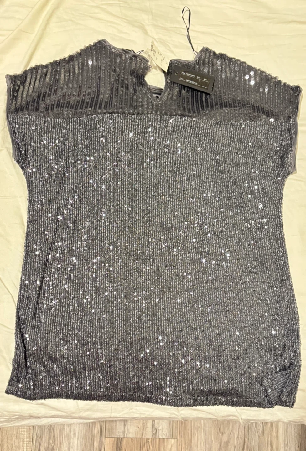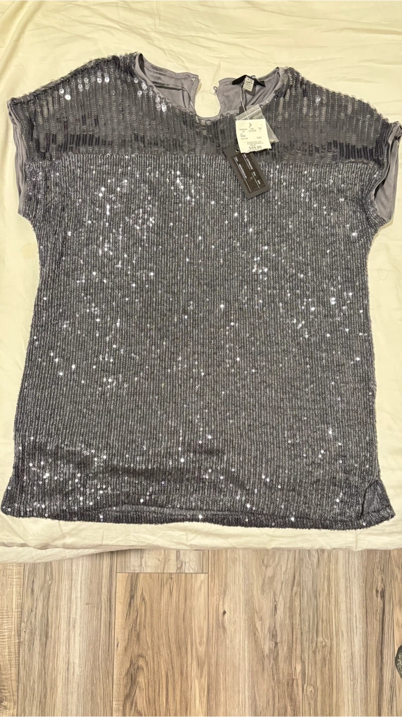 Sparkly sequined top from Cable & Gauge. Top has short sleeves and a V-neck detail at the back. Size is medium.