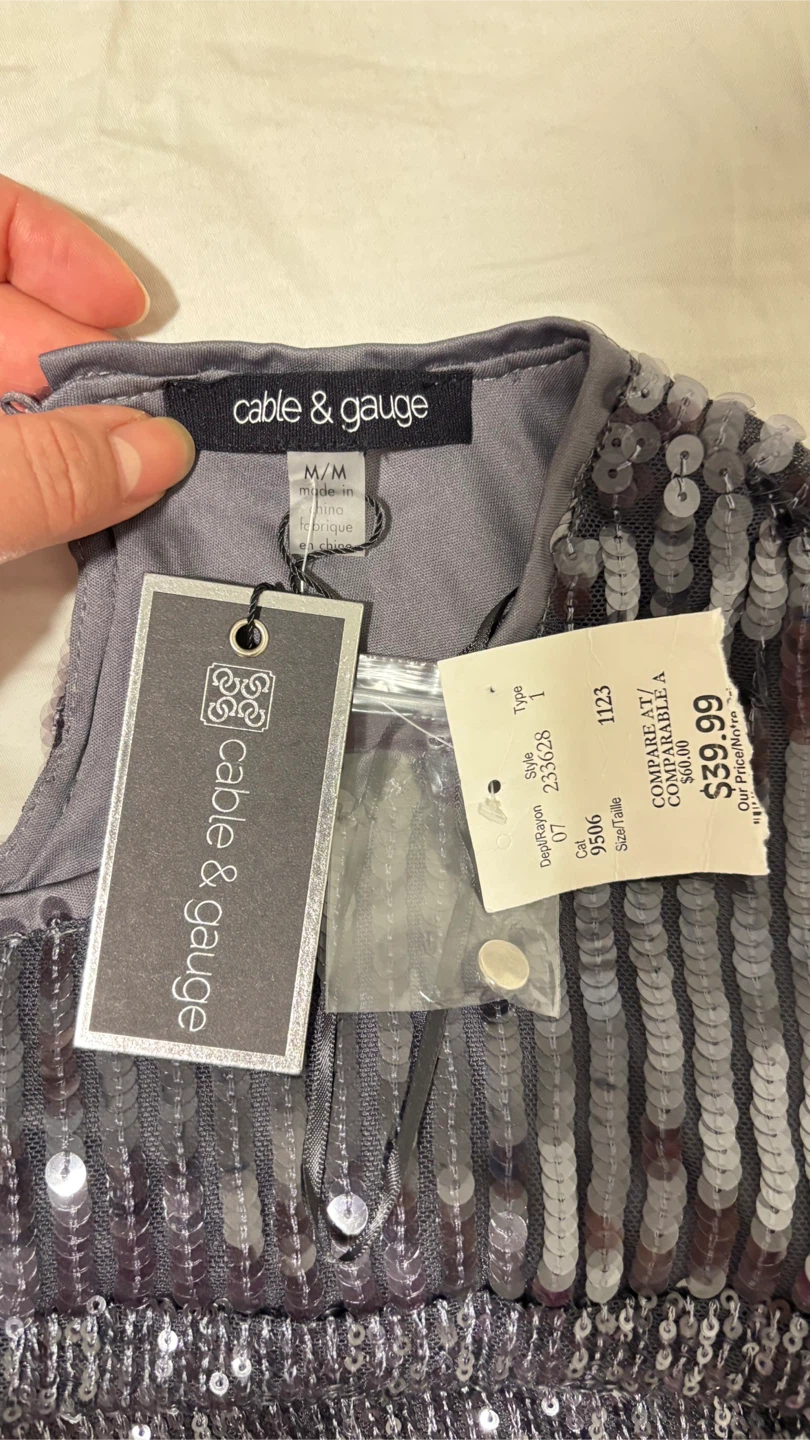 Sparkly sequined top from Cable & Gauge. Top has short sleeves and a V-neck detail at the back. Size is medium.