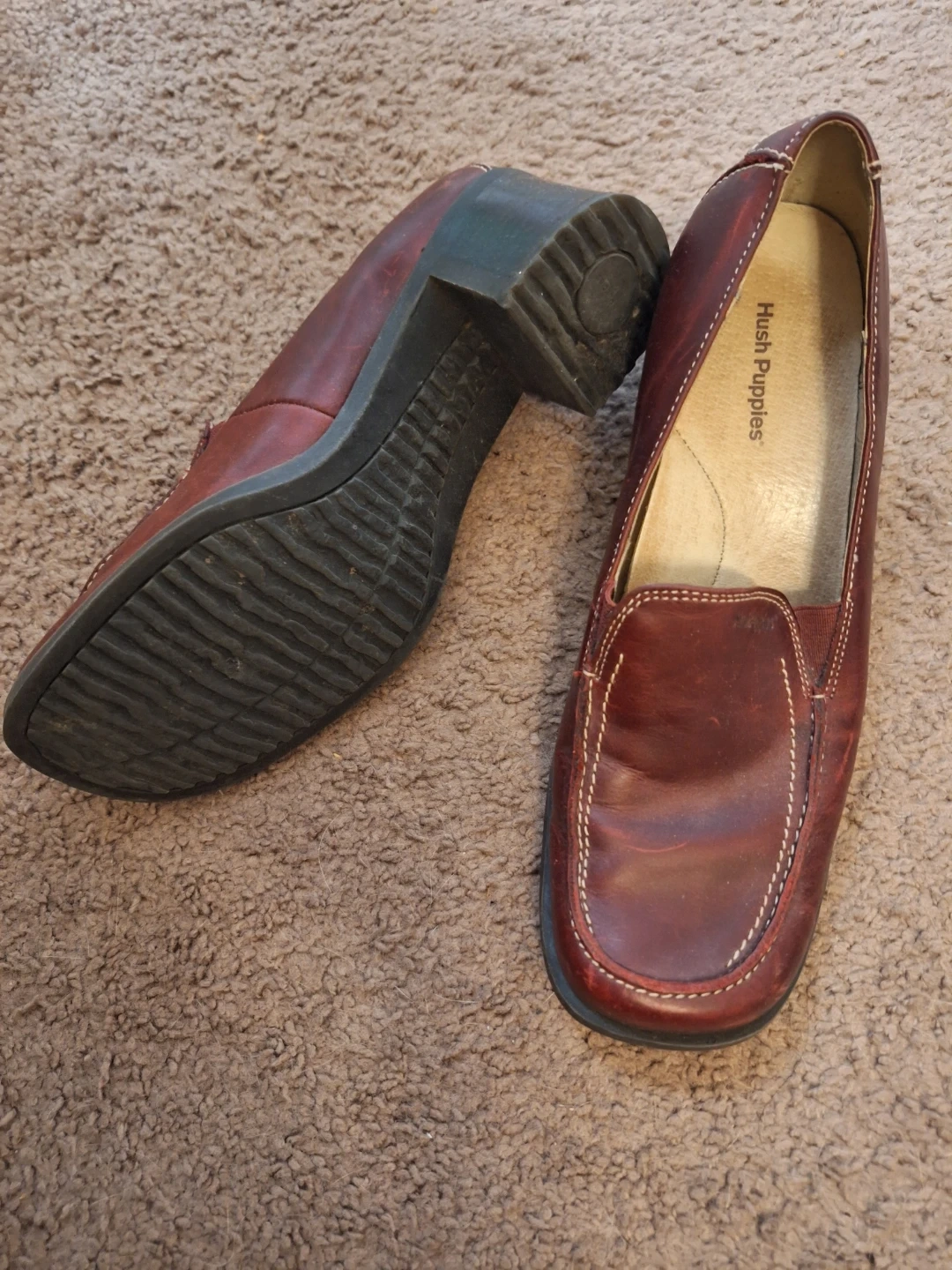 Pick up only! Selling a pair of Hush Puppies leather loafers in a lovely reddish-brown colour. They're a size 9M. Female shoes! These shoes are in good condition and ready for a new owner!